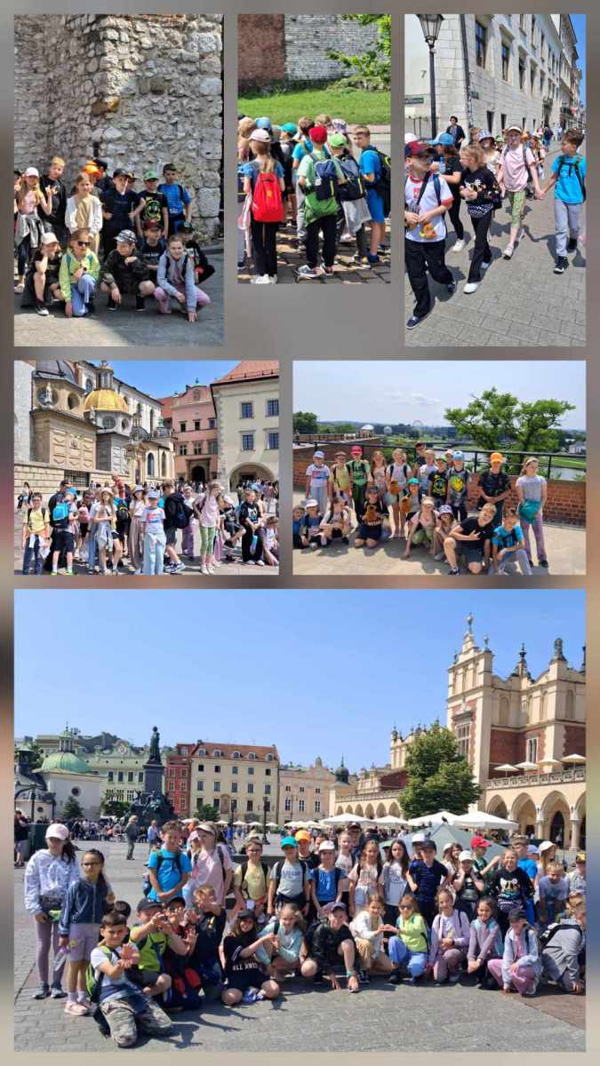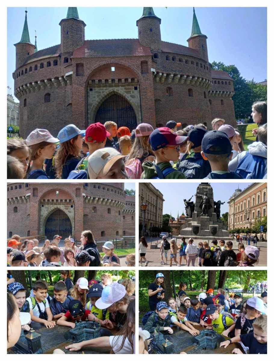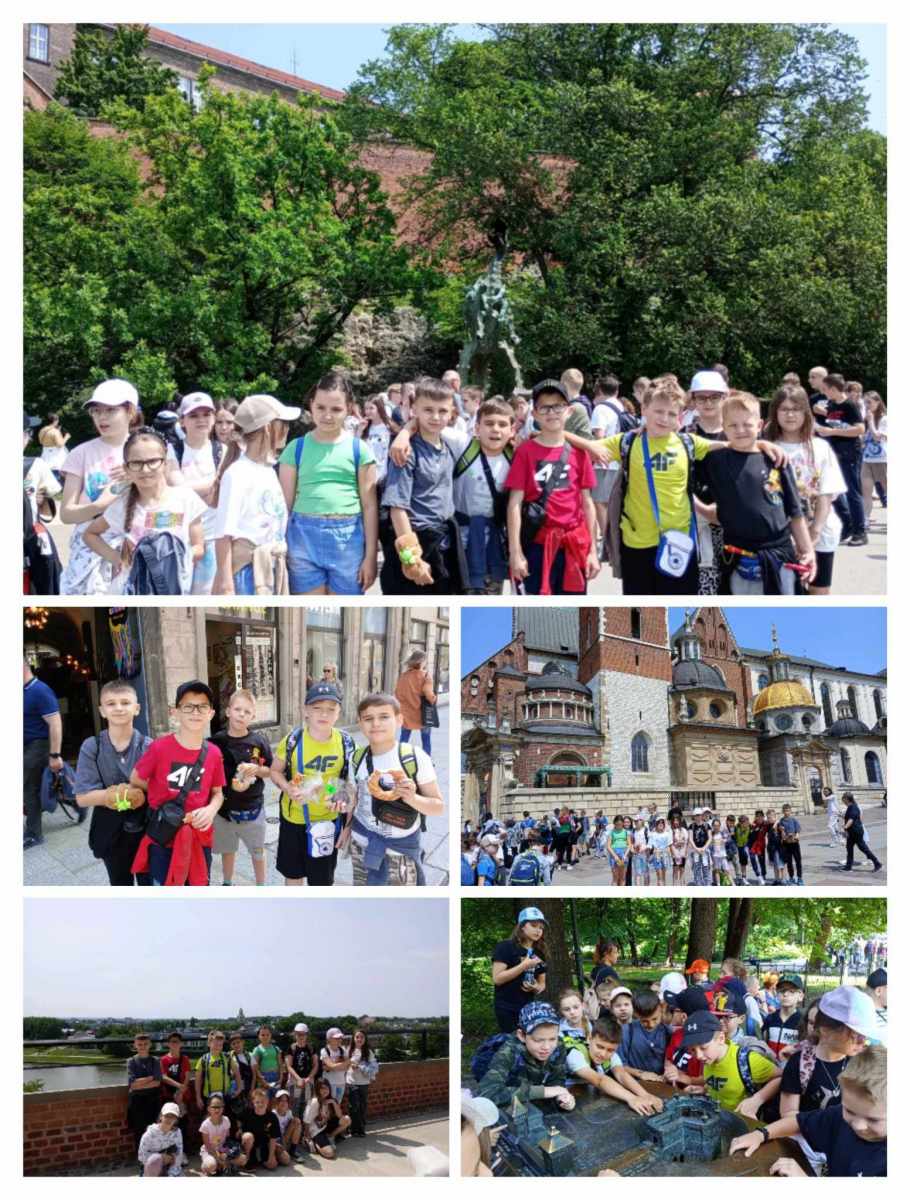 10 czerwca uczniowie klas trzecich wybrali się na wycieczkę do Krakowa. Program wyjazdu był bogaty i pełen atrakcji edukacyjnych oraz rozrywkowych. Pierwszym punktem zwiedzania były Sukiennice, czyli słynna krakowska hala targowa znajdująca się na Rynku Głównym. Dzieci z zainteresowaniem oglądały stoiska z pamiątkami, a przewodnik opowiedział im o historii tego zabytkowego miejsca oraz o dawnych kupcach handlujących tam swoimi towarami.