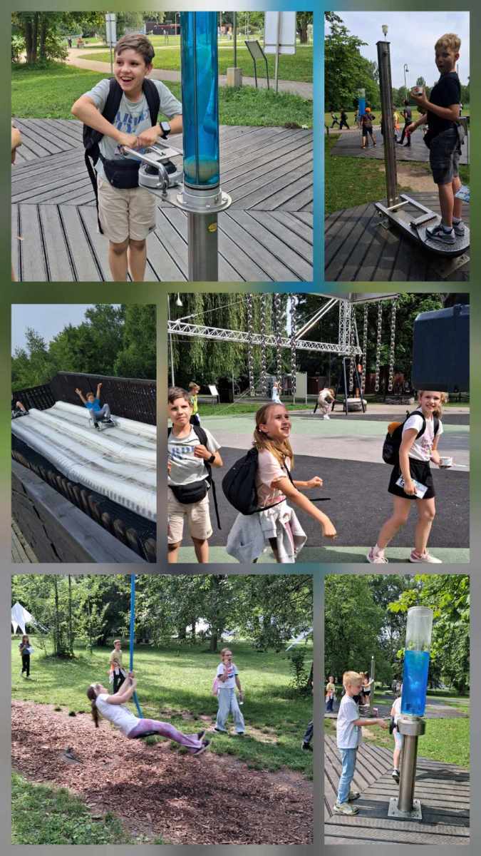 Po południu udaliśmy się do Ogrodu Doświadczeń im. Stanisława Lema – interaktywnego parku edukacyjnego, w którym dzieci mogły samodzielnie eksperymentować i poznawać prawa fizyki poprzez zabawę. Ogromne zainteresowanie wzbudziły urządzenia ilustrujące zjawiska akustyczne, optyczne i mechaniczne. Czas spędzony w ogrodzie był nie tylko ciekawy, ale i bardzo inspirujący.