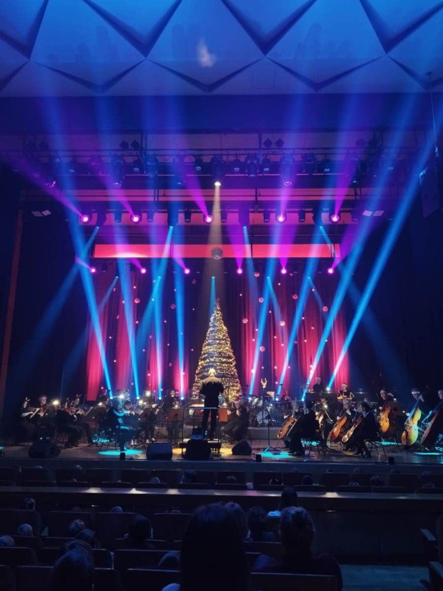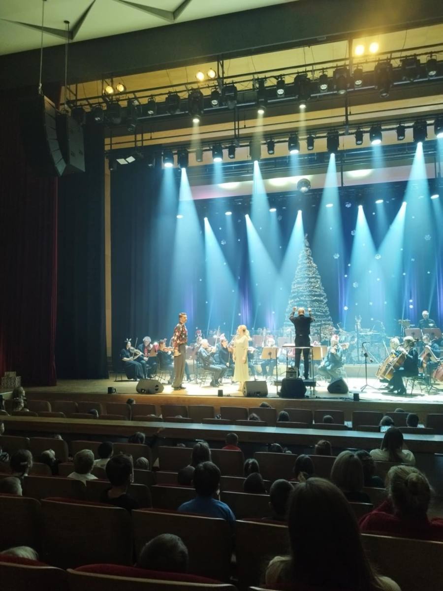 Sala Filharmonii była pięknie udekorowana, a dodatkowe efekty specjalne – gra świateł i bańki dymne – sprawiły, że koncert był niezapomnianym widowiskiem. Nasi najmłodsi uczniowie aktywnie uczestniczyli w zabawie, śpiewając razem z wykonawcami.