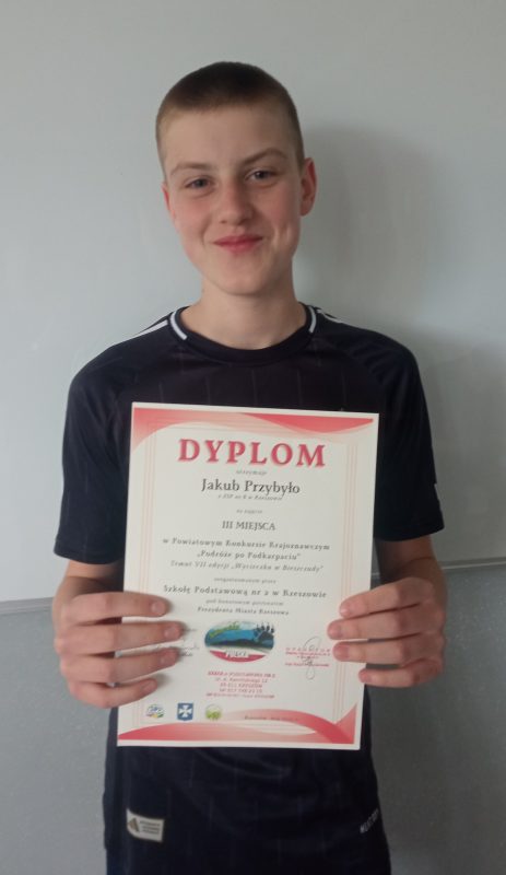 Z radością informujemy, że uczeń naszej szkoły Jakub Przybyło zdobył III miejsce w Powiatowym Konkursie Krajoznawczym „Podróże po Podkarpaciu”. Jakub został wyróżniony za przygotowanie prezentacji pt. „Wycieczka w Bieszczady”, w której w ciekawy sposób przedstawił walory turystyczne i przyrodnicze tego wyjątkowego regionu. Serdecznie gratulujemy i życzymy dalszych sukcesów!