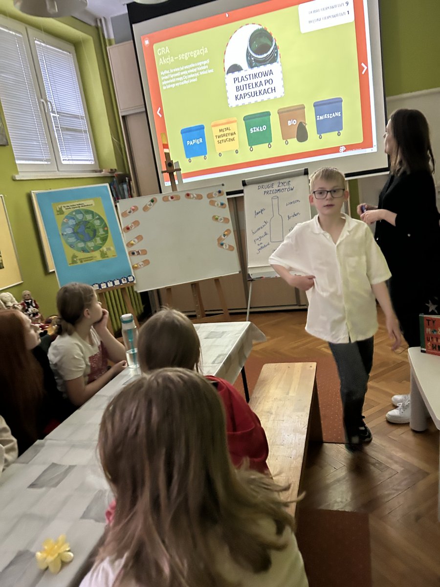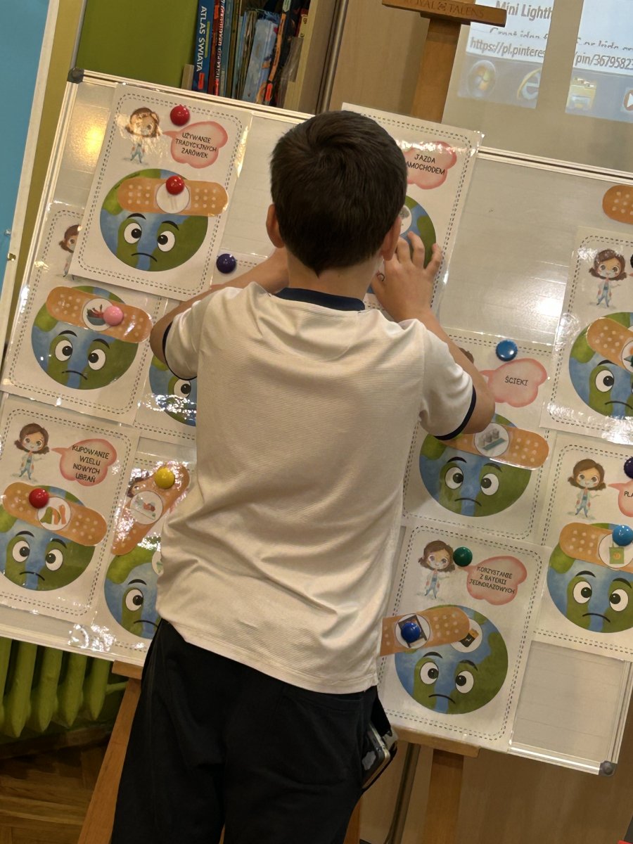 Dzieci z zainteresowaniem wysłuchały opowiadania z książki „Ty też możesz uratować świat”, wykonywały interaktywne zadania dotyczące segregacji śmieci oraz ćwiczenia, które pokazały, jak ważne jest dbanie o przyrodę. Nie zabrakło również owocnych dyskusji z panią bibliotekarką.
