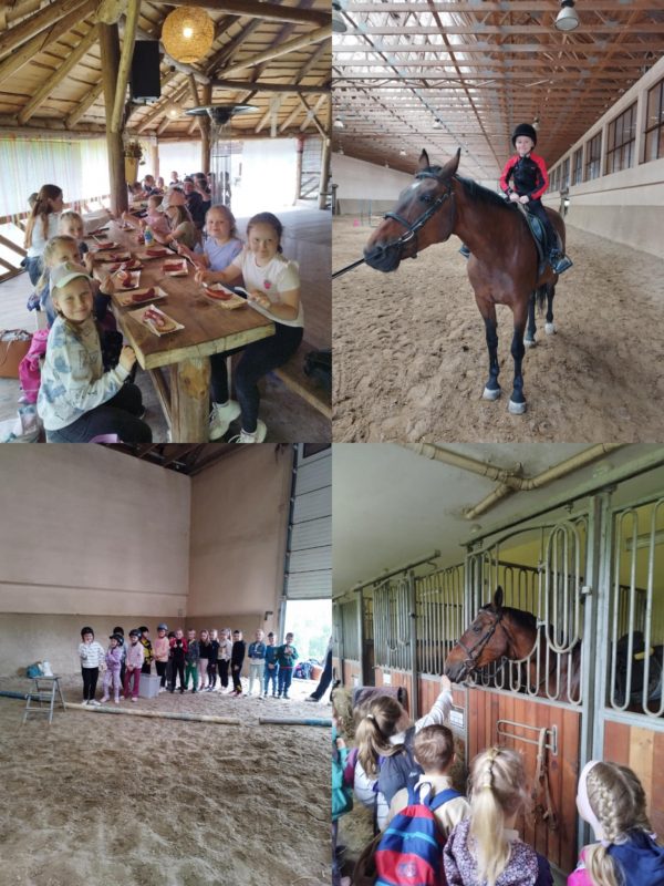 W czwartek klasa 1a wybrała się na pełną atrakcji wycieczkę do Zagrody Jantar w Pstrągowej. Uczniowie mieli okazję uczestniczyć w przejażdżce konnej, wziąć udział w warsztatach breloczkowych, a także wspólnie piec kiełbaski przy ognisku. Nie zabrakło też czasu na radosną zabawę na placu zabaw. Pogoda dopisała – było słonecznie i ciepło, a zielone, malownicze krajobrazy okolicy zachwyciły wszystkich uczestników. Dzieci wróciły z wycieczki w doskonałych humorach, pełne wrażeń i nowych wspomnień.