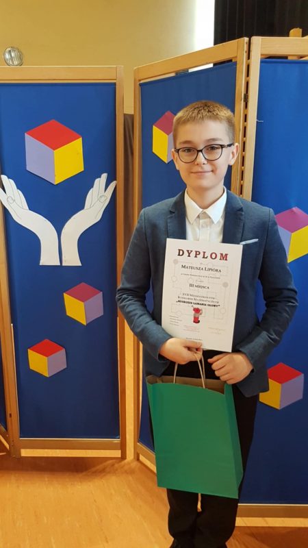 Uczeń klasy 8a Dominik Puzio zdobył I miejsce oraz Mateusz Lipiór z klasy 6b zdobył III miejsce.