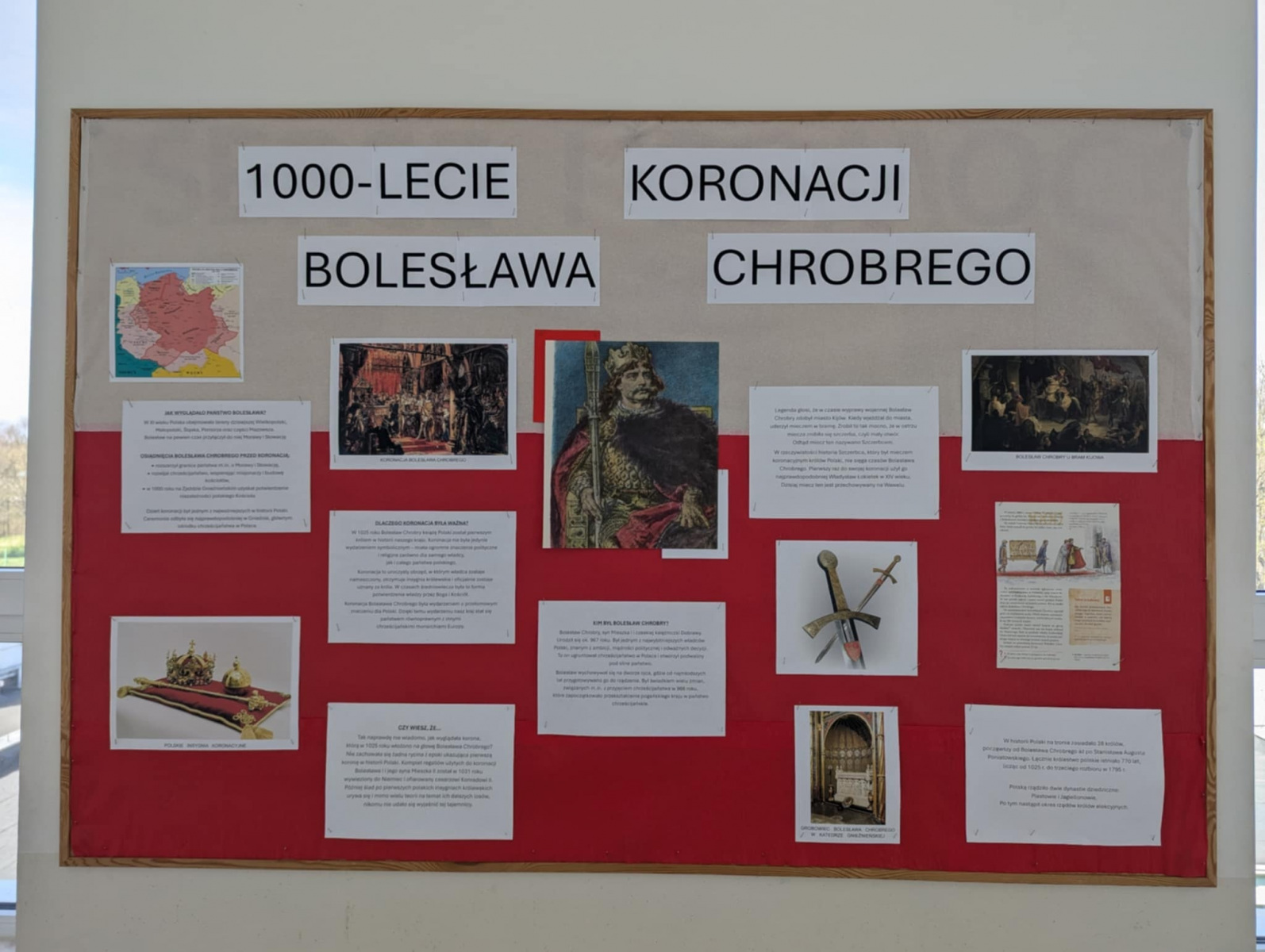 Z okazji tysiąclecia koronacji Bolesława Chrobrego na pierwszego króla Polski, nasza szkoła wzięła udział w ogólnopolskiej akcji, której celem było wspólne świętowanie tego ważnego jubileuszu. W związku z tym w naszej placówce przeprowadzono szereg działań, dzięki którym dzieci mogły w przystępny sposób utrwalić wiedzę na temat pierwszego polskiego monarchy oraz czasów, w jakich przyszło mu rządzić.