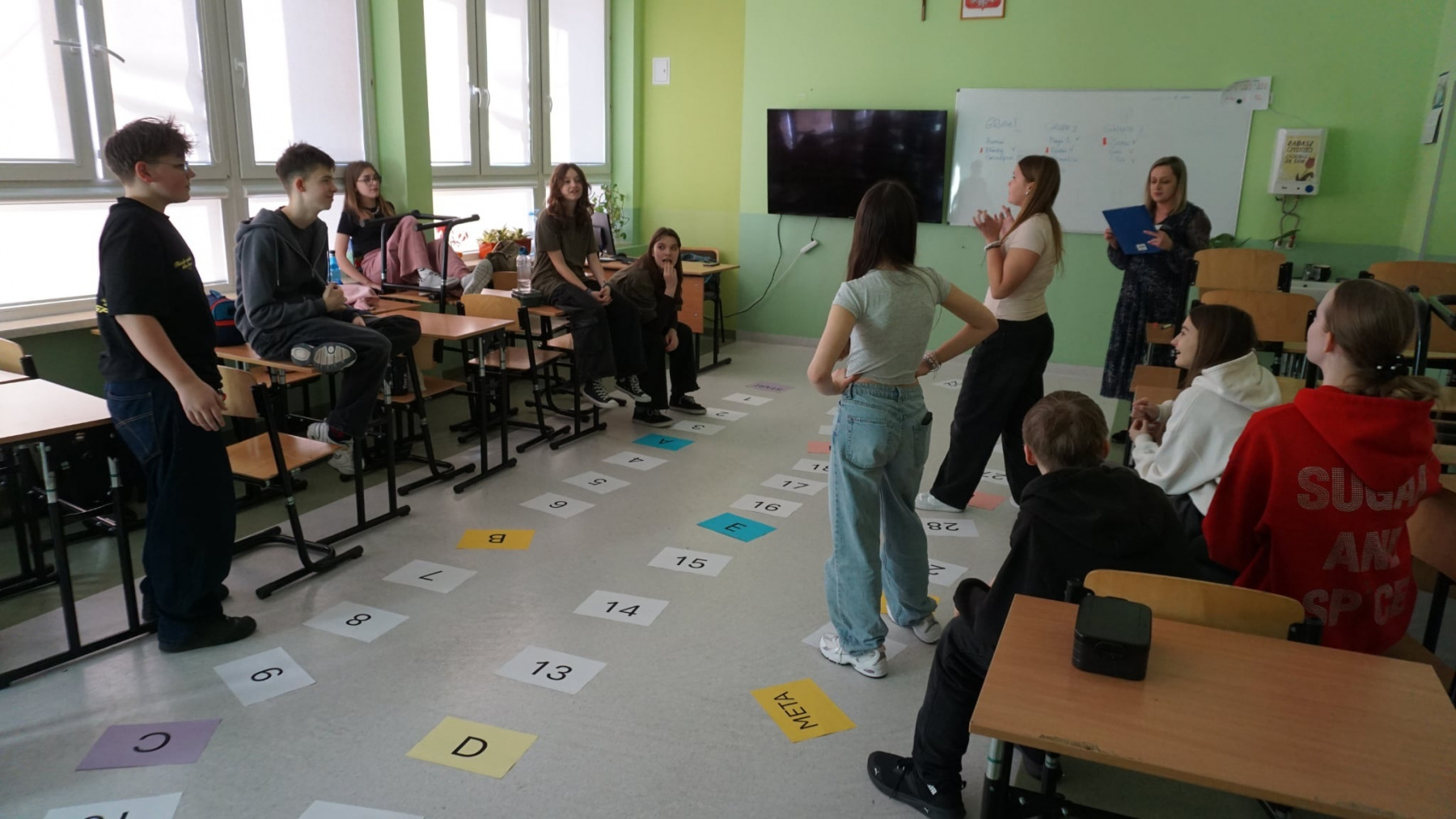 Jednym z takich działań była gra planszowa, w którą dzieci miały okazję zagrać podczas I Dnia Wiosny. Uczniowie klas 4-8 zostali podzieleni na 4-osobowe grupy, w których jedna osoba występowała w roli pionka, zaś 3 kolejne stanowiły zespół, który odpowiadał na pytania. Plansze do gry składające się z 40 różnych pól zostały rozmieszczone w każdej sali lekcyjnej. O zwycięstwie poszczególnych drużyn decydowały nie tylko spryt i szczęście, ale przede wszystkim wiedza historyczna. Kolejna gra, z którą zmierzyli się nasi uczniowie, została stworzona na bazie escape room’u. Polegała ona na rozwiązywaniu różnych zagadek i łamigłówek w taki sposób, aby powstało hasło „Tam skarb twój gdzie serce twoje”. Zabawa ta nie tylko miała na celu utrwalenie historycznej wiedzy uczniów, lecz stała się również okazją do rozmów na temat wartości, o tym, co może być „skarbem” we współczesnym świecie.