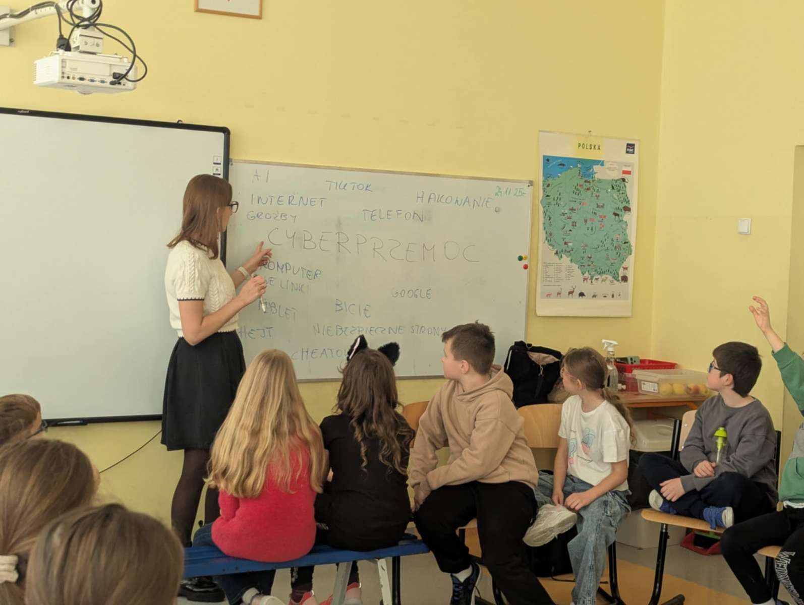 Pani mecenas przedstawiła różne formy przemocy oraz omówiła sposoby udzielania pomocy dzieciom, które jej doświadczają. Wyjaśniła również, jakie zachowania związane z hejtem mogą stanowić przestępstwo zgodnie z Kodeksem karnym, jakie konsekwencje ponoszą sprawcy, a także jakie konkretne kroki prawne mogą podjąć dorośli wobec osób dopuszczających się hejtu.