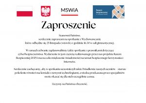 Działanie zrealizowano w ramach Rządowego Programu Ograniczania Przestępczości i Aspołecznych Zachowań Razem Bezpieczniej na lata 2025-2028. Tytuł projektu: Tworzenie, rozwijanie i doskonalenie kompetencji społecznych w zakresie cyberbezpieczeństwa wśród mieszkańców Gminy Miasto Rzeszów.