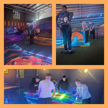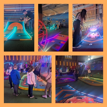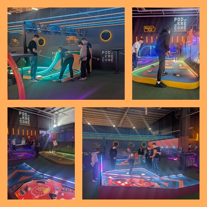 31 października uczniowie klasy 8b wybrali się na krótki spacer w piękną, jesienną pogodę. Celem wyjścia była kręgielnia „Podkręcone”, gdzie ósmoklasiści po raz pierwszy mieli okazję zagrać w minigolfa. Nowa forma aktywności okazała się świetną zabawą – pełną śmiechu, pozytywnej rywalizacji i dobrego humoru. Wspólnie spędzony czas pozwolił uczniom nie tylko odpocząć od szkolnych obowiązków, lecz także wzmocnić klasowe relacje.