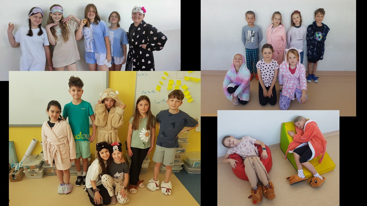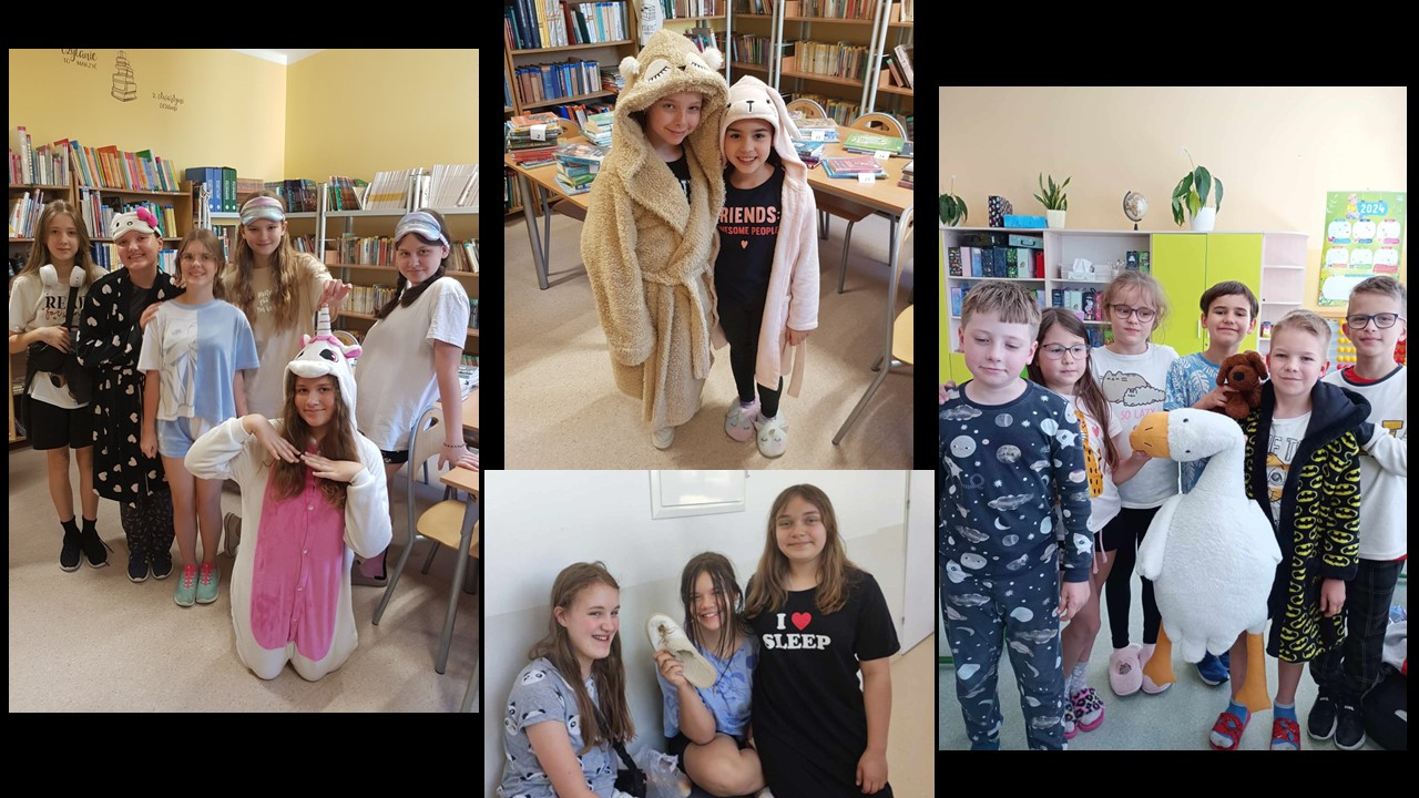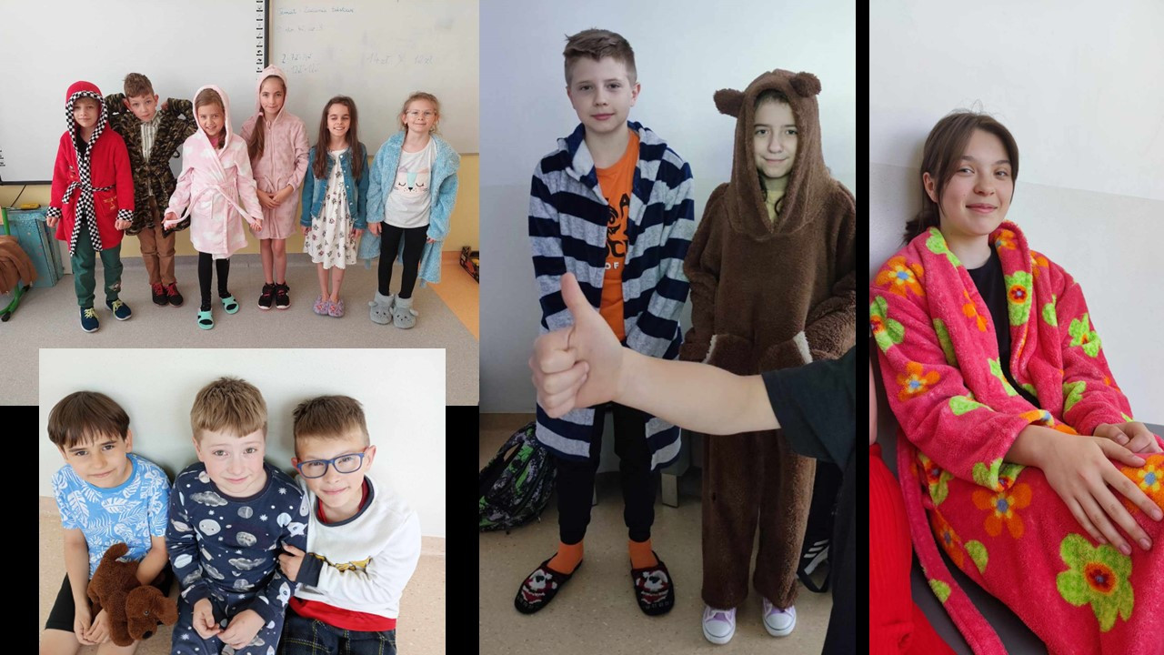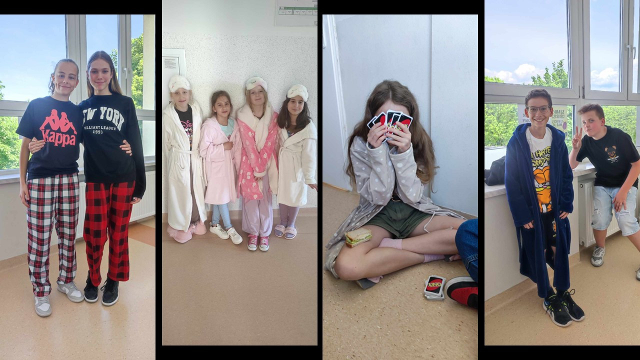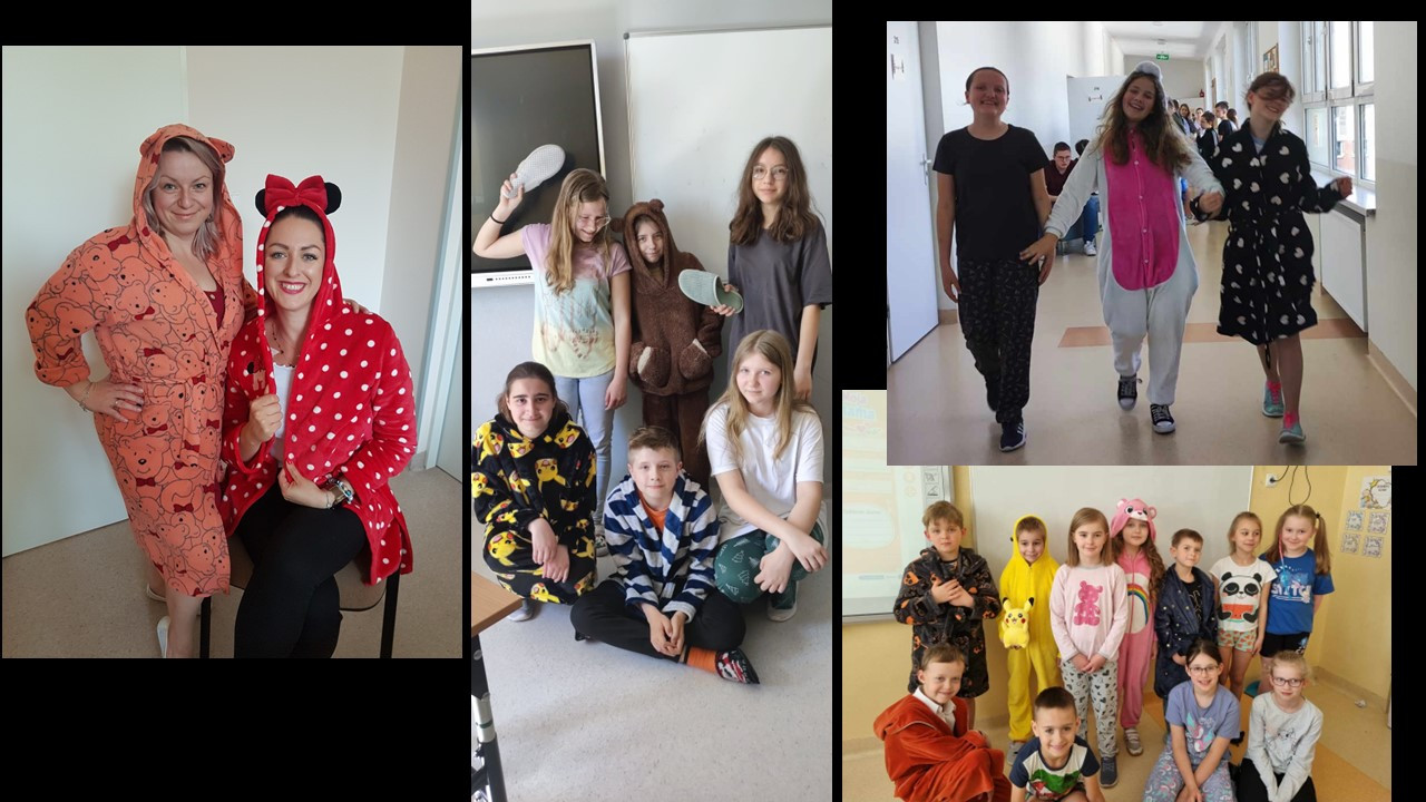 Samorząd Uczniowski zorganizował w naszej szkole szczególną akcję – Dzień Piżamy. Ten z pozoru błahy temat do świętowania miał swoje szczególne przesłanie. Tego dnia podczas lekcji z wychowawcami uczniowie rozmawiali o głównej idei tego przedsięwzięcia, czyli solidaryzowania się z dziećmi, dla których piżama to strój codzienny. Dzieci i młodzież zastanawiali się, w jaki sposób mogliby pomóc dzieciom chorym, przebywającym na różnych oddziałach szpitalnych i w hospicjach; rozmawiali o akcjach charytatywnych, organizowanych w naszej szkole (akcji „Żonkile”, zbiórkach darów dla hospicjum, zbiórkach książek do szpitali). Dzień Piżamy był też humorystyczną odskocznią od codziennego stroju szkolnego i okazją do integracji uczniów z różnych klas.