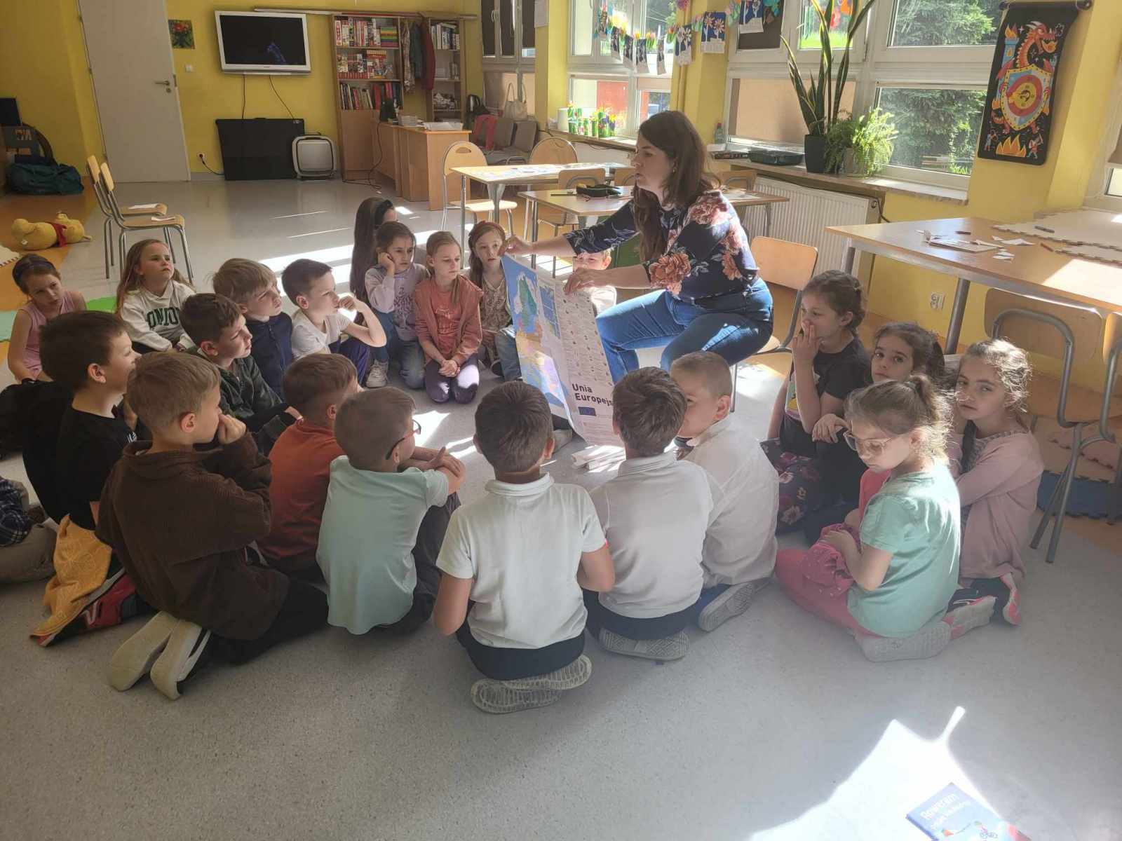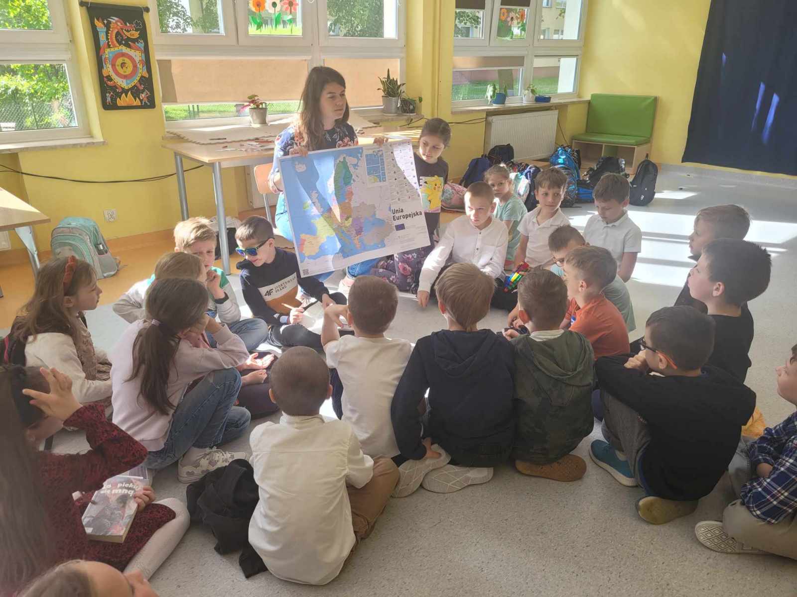 W dniach 6-9 maja odbył się na świetlicy szkolnej „Tydzień Unii Europejskiej”, w ramach którego rozmawialiśmy o Europie. Zajęcia obfitowały w zgadywanki i ciekawostki. Uczestnicy świetnie radzili sobie ze wskazywaniem stolic państw europejskich. Było dużo informacji i dużo dobrej zabawy!