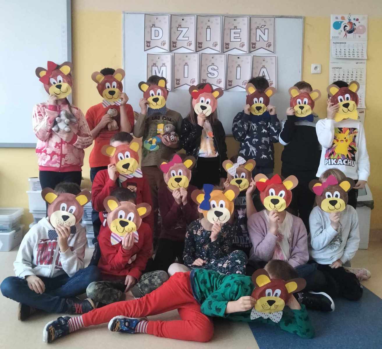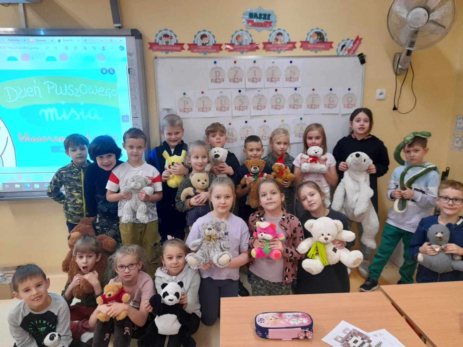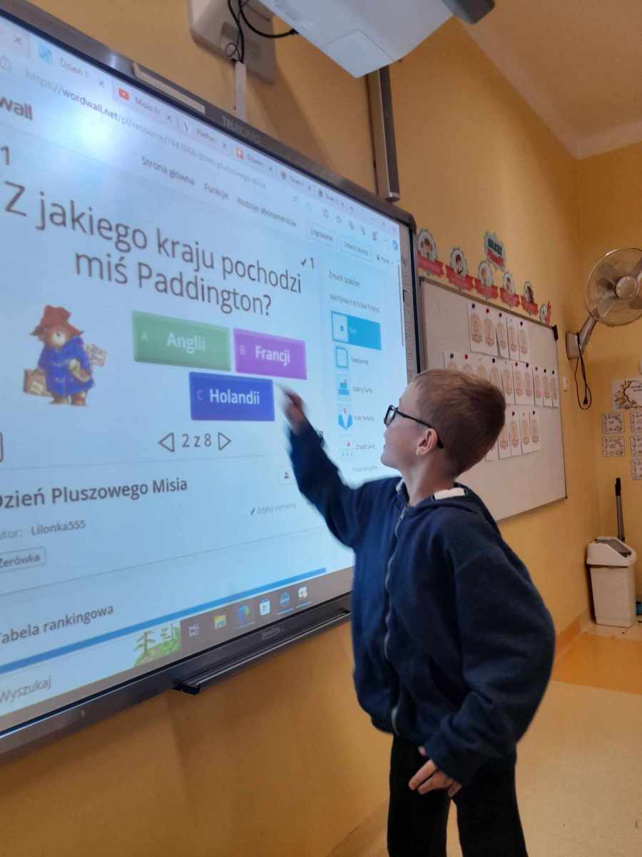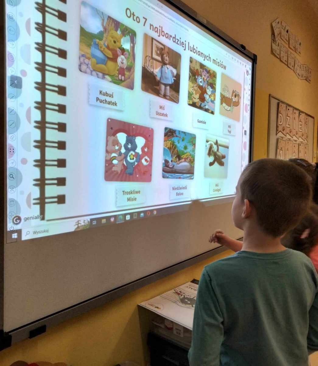 Czy święto Misia jest potrzebne? Oczywiście, że tak! Miękki, puchaty, bohater wielu książek i filmów, dający poczucie bezpieczeństwa i wsparcia. W dniu 24 listopada klasy I świętowały Dzień Pluszowego Misia. Najmłodsi uczniowie naszej szkoły przynieśli swoje ulubione misie, które towarzyszyły im podczas lekcji i wspólnej zabawy. Uczniowie chętnie opowiadali o swoich misiach, rozwiązywali zagadki oraz obejrzeli prezentację multimedialną o historii pluszowego misia. Przypomnieli sobie również niektóre z filmów z misiem w roli głównej – np. „Gumisie”, „Miś Uszatek”, „Kubuś Puchatek” i „Miś Colargol”. Na zajęciach plastycznych wykonywali misie różnymi technikami. Cały dzień upłynął w ciepłej atmosferze.