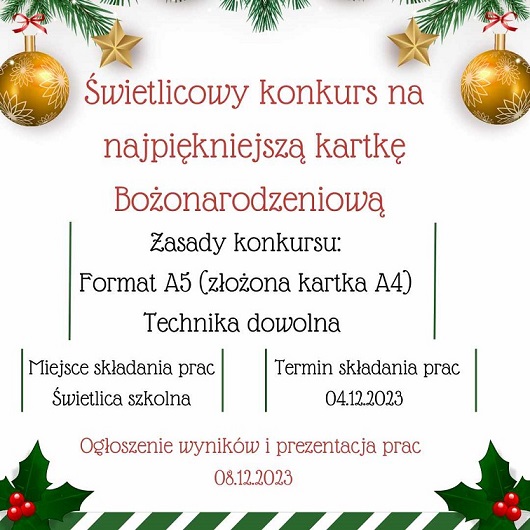 W związku z powyższym prosimy o dostarczenie ozdób do sali nr 2 (świetlica) najpóźniej do 07.12.2023 r.