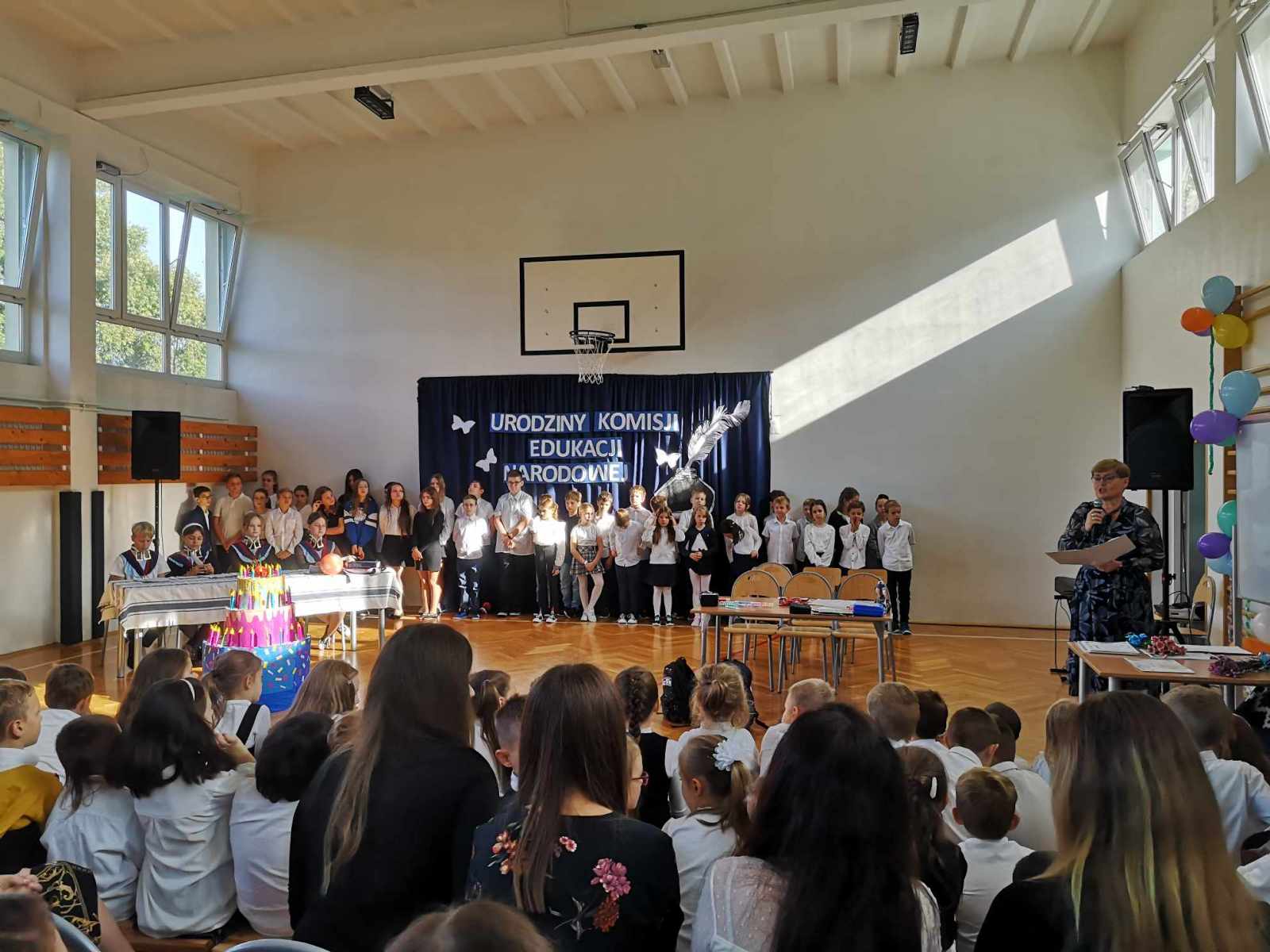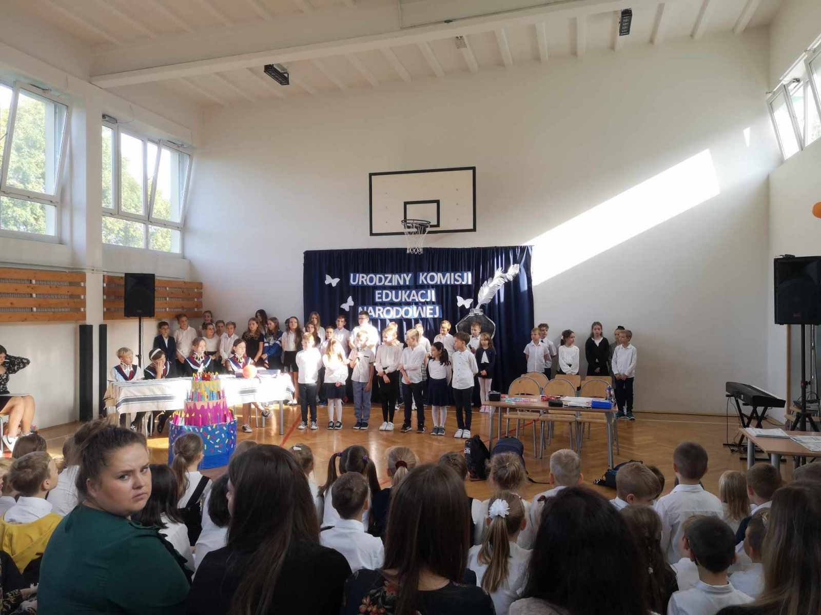 13 października 2023 uczniowie klasy 3c i 5a zorganizowali wyjątkowe urodziny dla szczególnej jubilatki – Komisji Edukacji Narodowej, która w tym roku skończyła 250 lat. Posłowie i Senatorowie opowiedzieli o historii powstania pierwszego ministerstwa edukacji, martwiąc się czy dzieło przez nich zapoczątkowane przetrwa. Niepotrzebnie, jak się okazało. Dostojna Jubilatka otrzymała w prezencie ogromny tort oraz liczne szkolne prezenty. Uczniowie klasy trzeciej zaprezentowali Posłom i Senatorom oraz całej zebranej społeczności wesołe przedstawienie, nieco z przymrużeniem oka opowiadające o współczesnej szkolnej rzeczywistości.