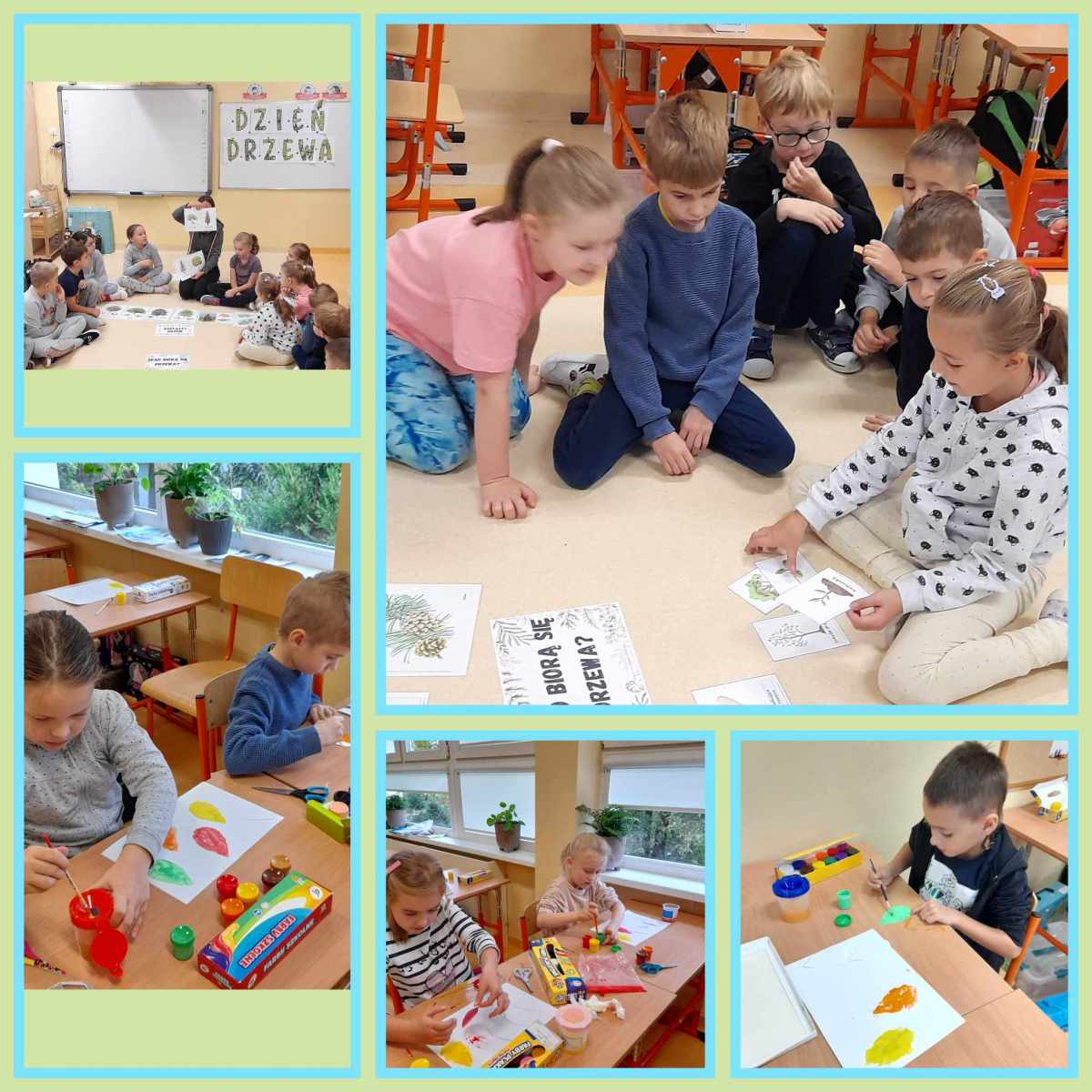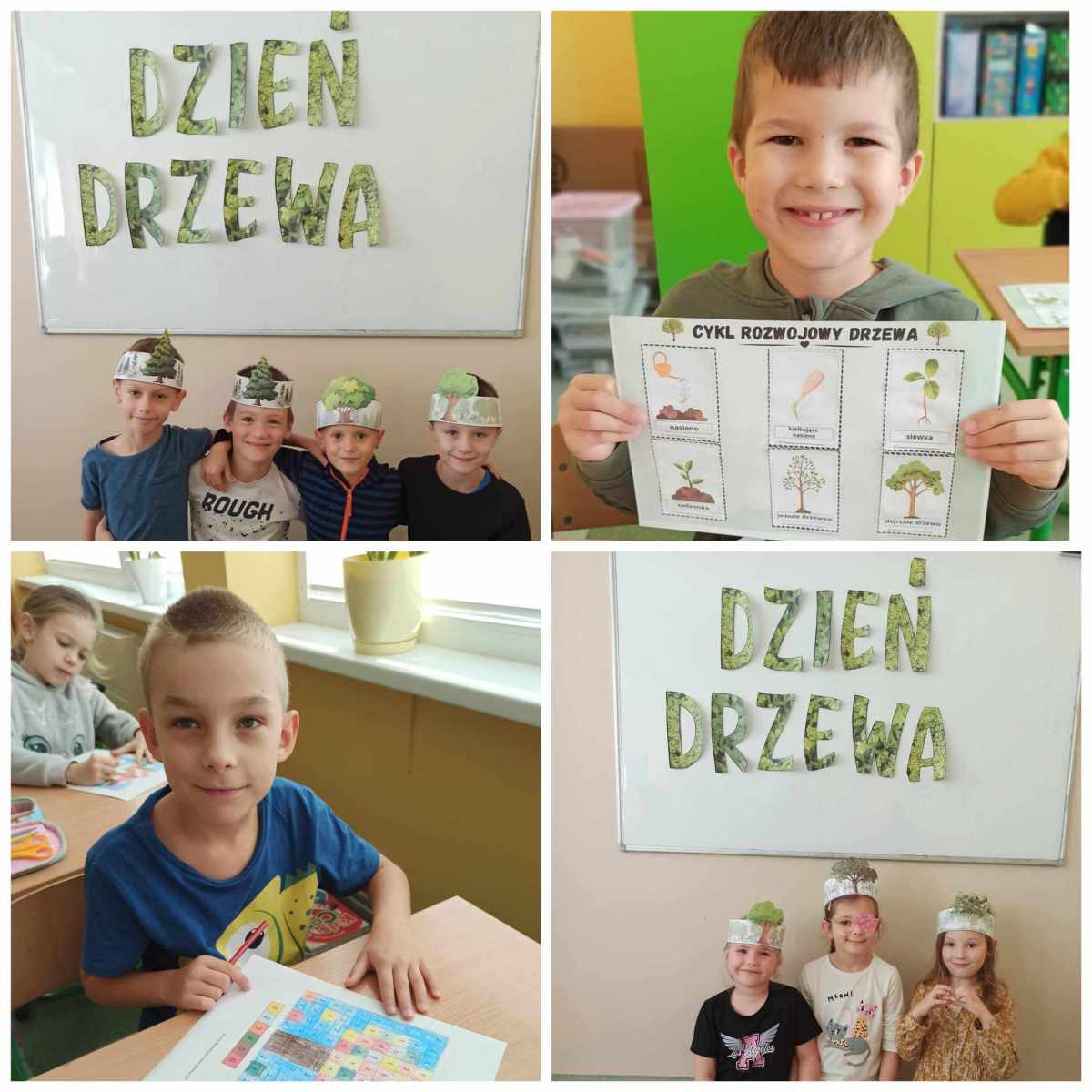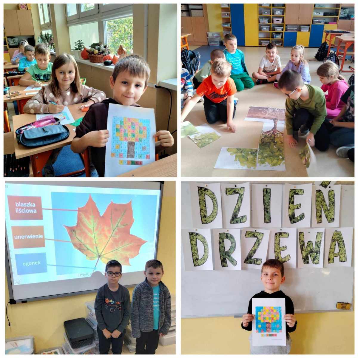 10 października klasy pierwsze obchodziły Dzień Drzewa. Uczniowie dowiedzieli się jak ważną rolę pełnią drzewa, poznali różne gatunki drzew i ich budowę. Dzieci zmierzyły się z różnymi zagadkami, rozpoznawały liście, rozwiązywały zakodowane zadania, z którymi świetnie sobie poradziły. Dodatkowo zostały wykonane piękne prace plastyczne, na których oczywiście królowały drzewa.