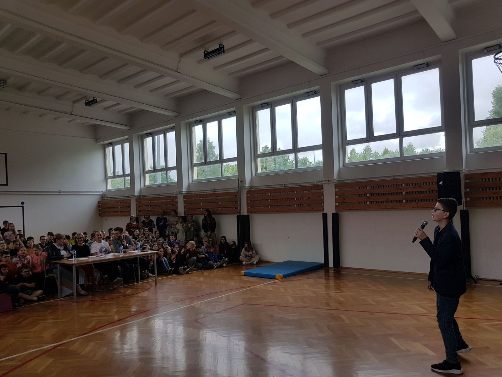 W ostatnim tygodniu roku szkolnego warto przypomnieć o tym, że mamy najzdolniejszych uczniów na świecie! Mogliśmy się o tym przekonać podczas szkolnego konkursu „Mam talent!”, zorganizowanego przez Samorząd Uczniowski. Konkurs składał się z dwóch etapów – eliminacji i finału. Podczas występów uczniowie zaprezentowali swoje umiejętności sportowe (akrobatyka, karate, hobby horse) oraz artystyczne (taniec, śpiew, gra na gitarze i pianinie). Występy naszych zdolnych uczniów oceniało jury w składzie: pani dyrektor Dorota Kozioł, pani wicedyrektor Jolanta Pyziak, nauczycielka w.f., pani Monika Osinko oraz nauczyciel muzyki, pan Łukasz Kobiałka. Wszyscy z niecierpliwością czekamy na wyniki konkursu, które zostaną ogłoszone podczas uroczystych akademii na zakończenie roku szkolnego. Pomysłodawczyniami i organizatorkami konkursu były przedstawicielki Samorządu Uczniowskiego: Aleksandra Janda z kl. 6a, Lena Gierula z kl. 4a i Ewa Czerwonka z kl. 5a – gratulacje za świetną inicjatywę!