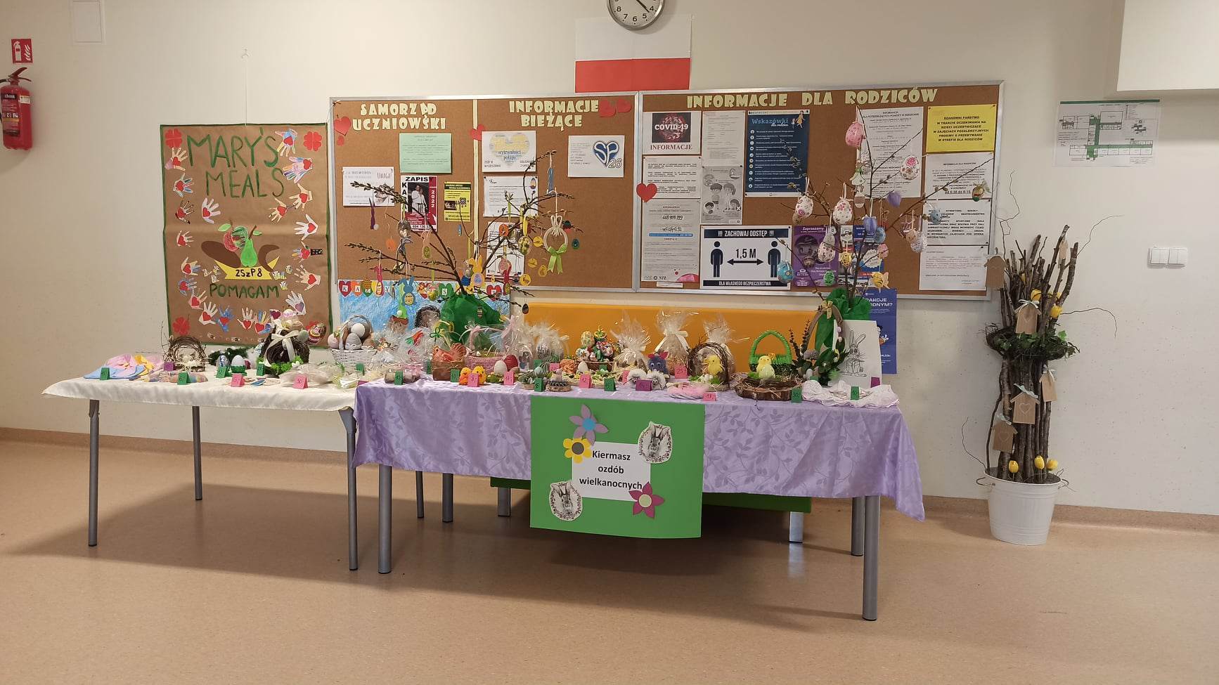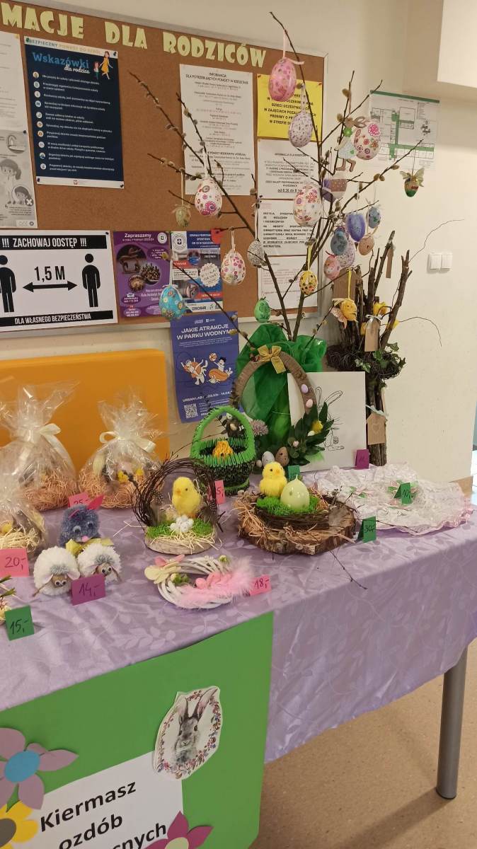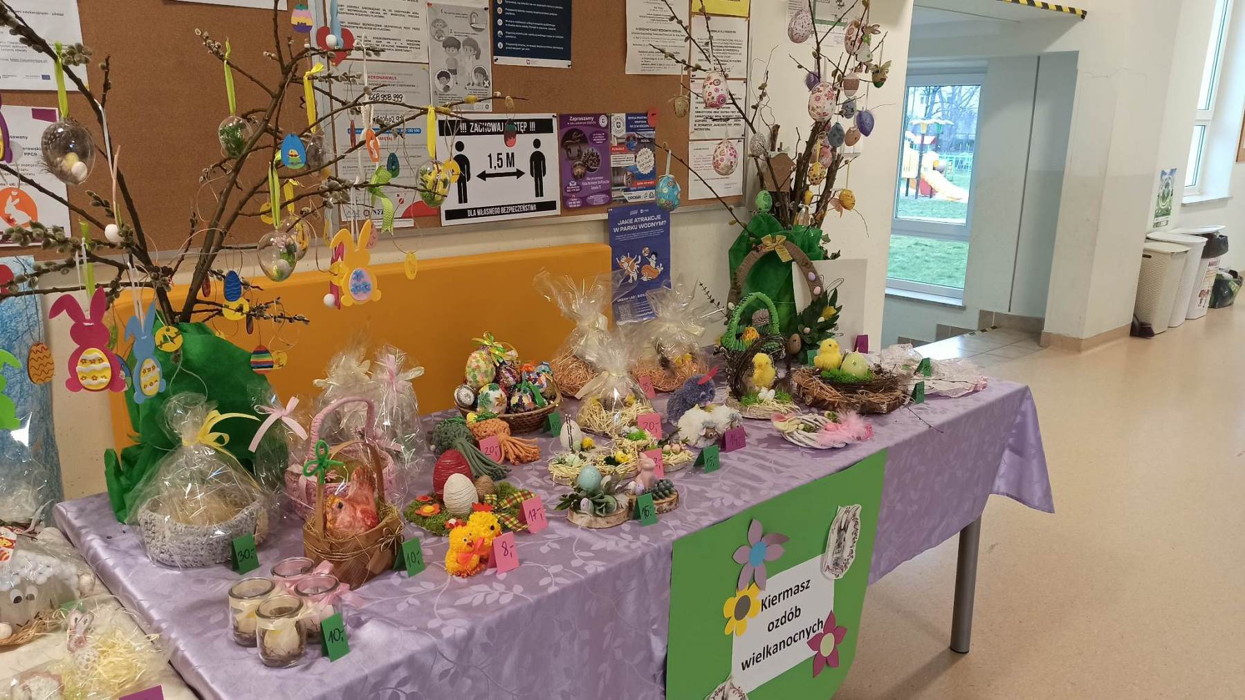 W ubiegłym tygodniu w naszej szkole odbył się kiermasz ozdób wielkanocnych wykonanych przez wychowawców świetlicy we współpracy z rodzicami oraz dziećmi. Prezentowane ozdoby ukazały niesamowitą kreatywność naszych uczniów. Ciekawe pomysły, kolorystyka i estetyka wykonania wzbudziły ogromne zainteresowanie.