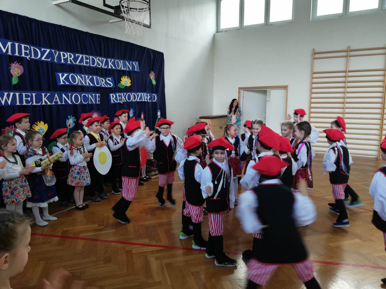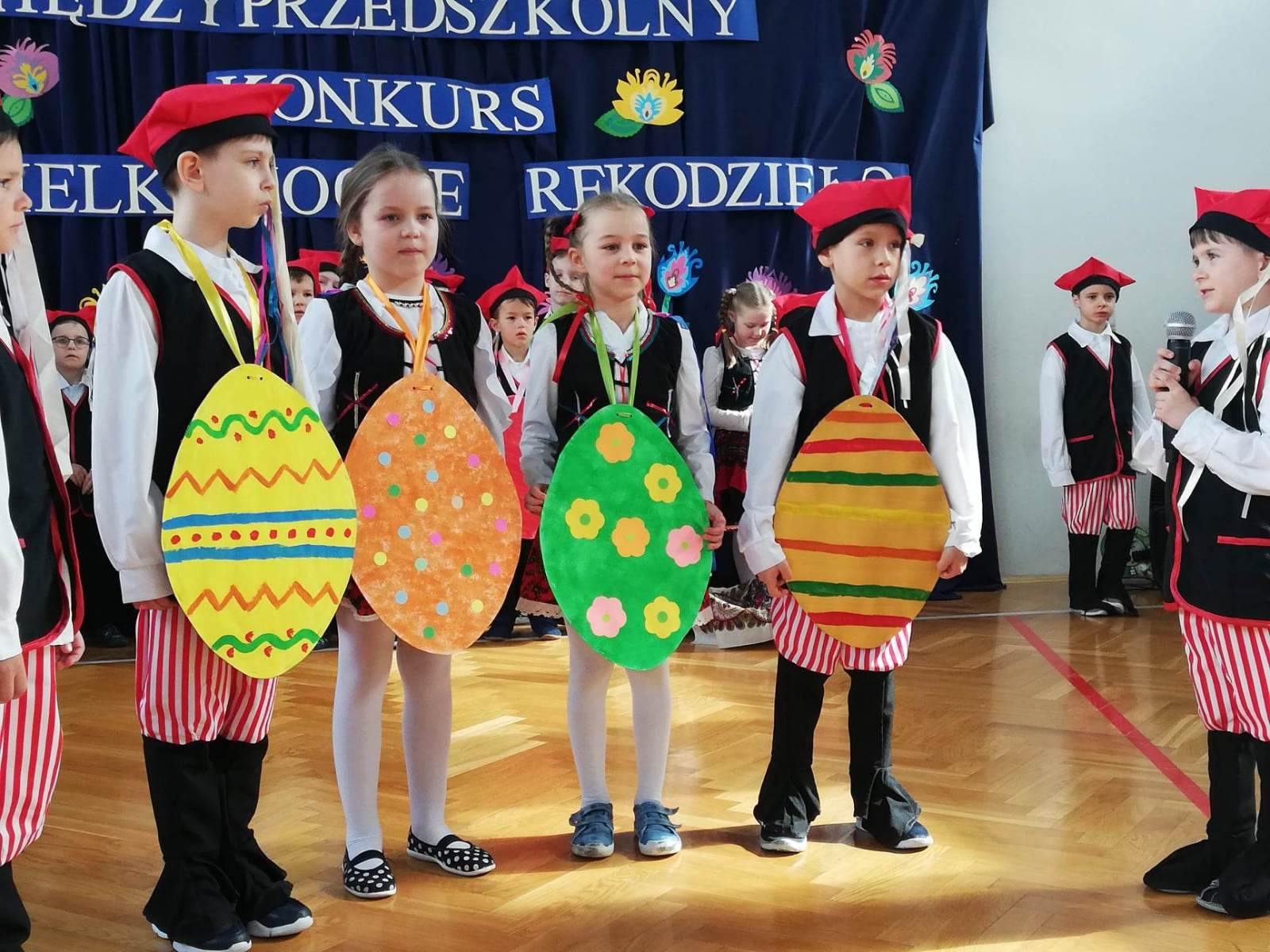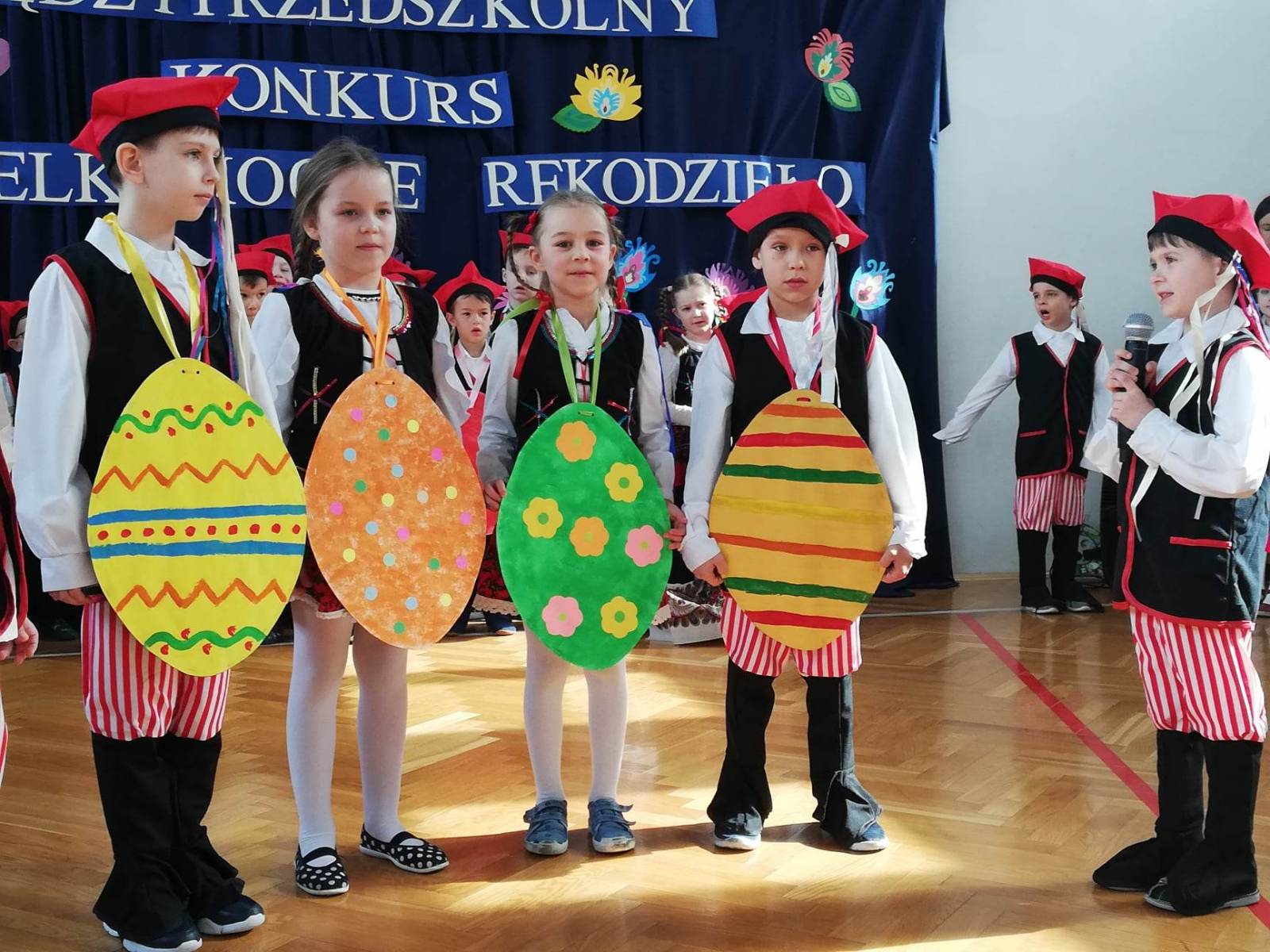 Z okazji Świąt Wielkanocnych najstarsze przedszkolaki z grupy „Pszczółki” i „Biedronki” wspólnie z wychowawcami Agnieszką Kubrak, Eweliną Ostrowską i Marzeną Doniesiewicz przygotowały piękne przedstawienie „Pisankowa Moda” , którego celem było kultywowanie tradycji ludowych, wprowadzenie w świąteczny nastrój i złożenie życzeń uczniom i wychowawcom klas 1-3.