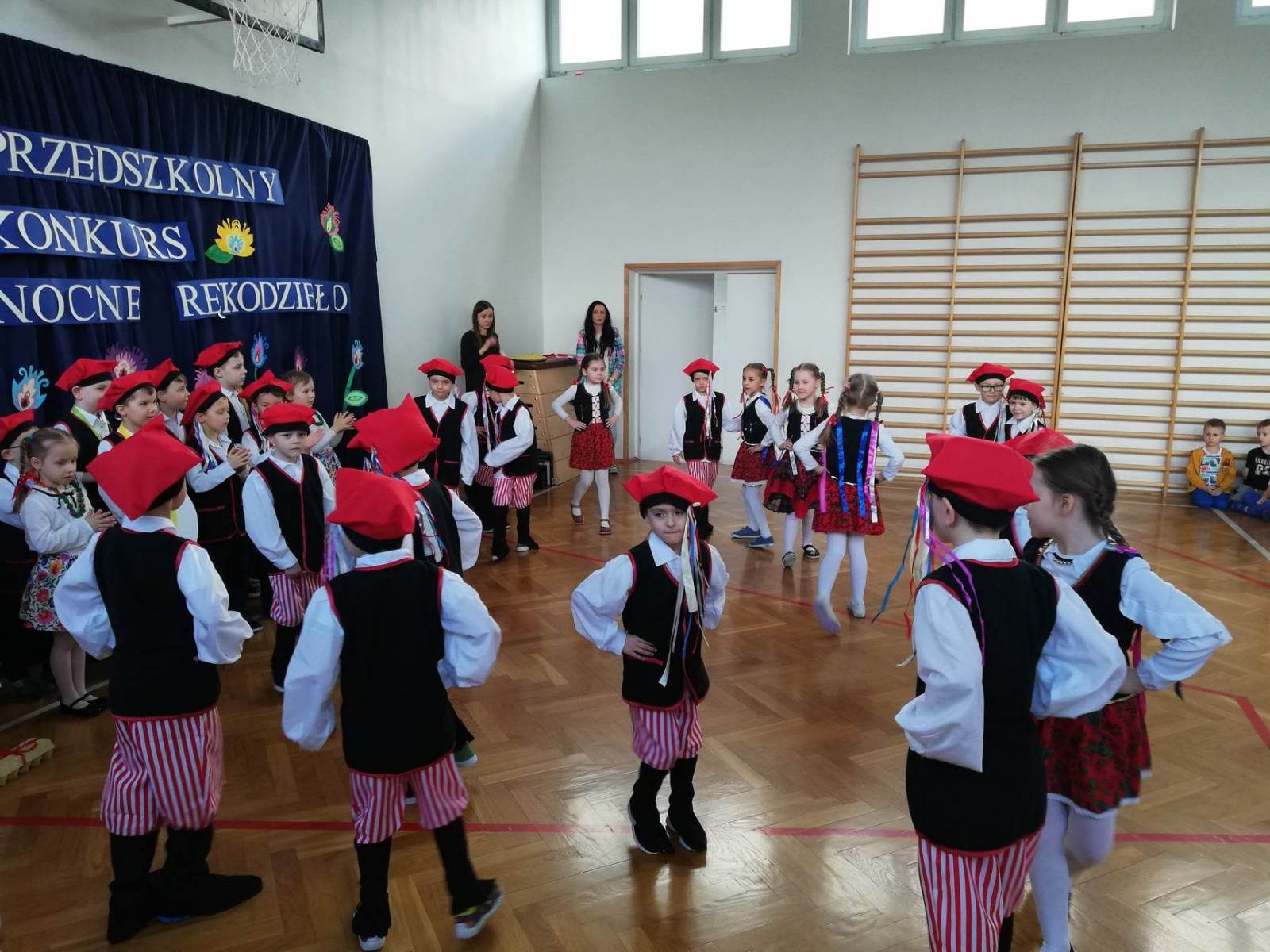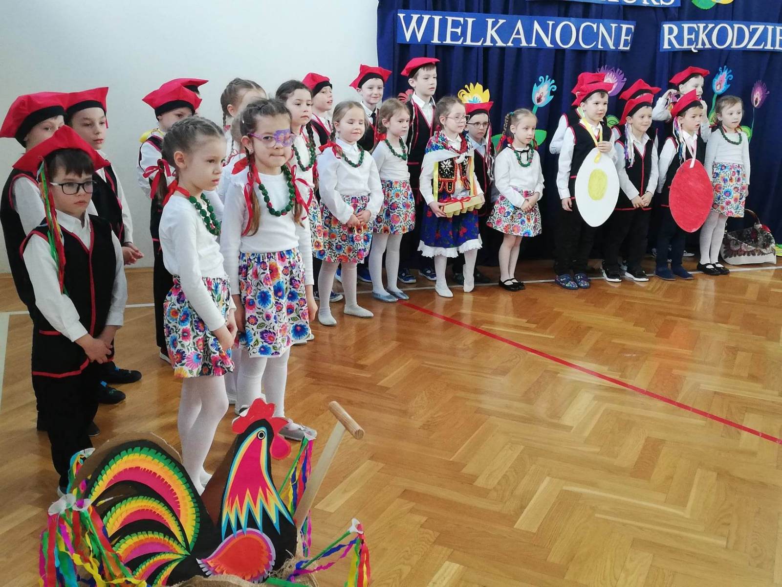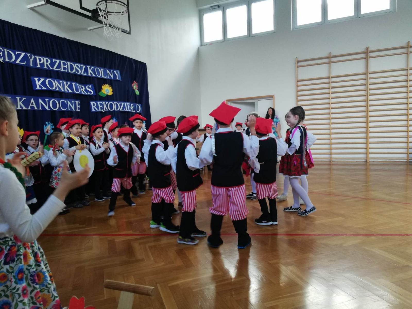 Z okazji Świąt Wielkanocnych najstarsze przedszkolaki z grupy „Pszczółki” i „Biedronki” wspólnie z wychowawcami Agnieszką Kubrak, Eweliną Ostrowską i Marzeną Doniesiewicz przygotowały piękne przedstawienie „Pisankowa Moda” , którego celem było kultywowanie tradycji ludowych, wprowadzenie w świąteczny nastrój i złożenie życzeń uczniom i wychowawcom klas 1-3.