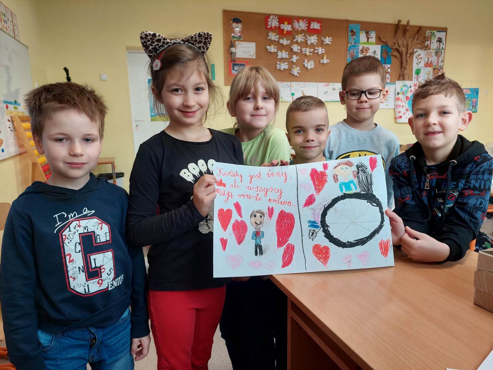 Pluszowy miś to zabawka, która towarzyszy dzieciom przez długie lata. Ta popularna przytulanka jest powiernikiem dziecięcych tajemnic, smutków i radości. Nieraz pociesza, innym razem pomaga zasnąć. Aby uczcić swego wiernego „przyjaciela”, 25. listopada już od rana, wraz z uczniami klas I pojawiły się w szkole misie – misie małe, średnie, duże i te bardzo, bardzo duże. Następnie dzieci wykonały w grupach misiową foto budkę i „wyturlały” własnego misia, a także opisywały swoje misie i próbowały po opisie odgadnąć, który do kogo należy.