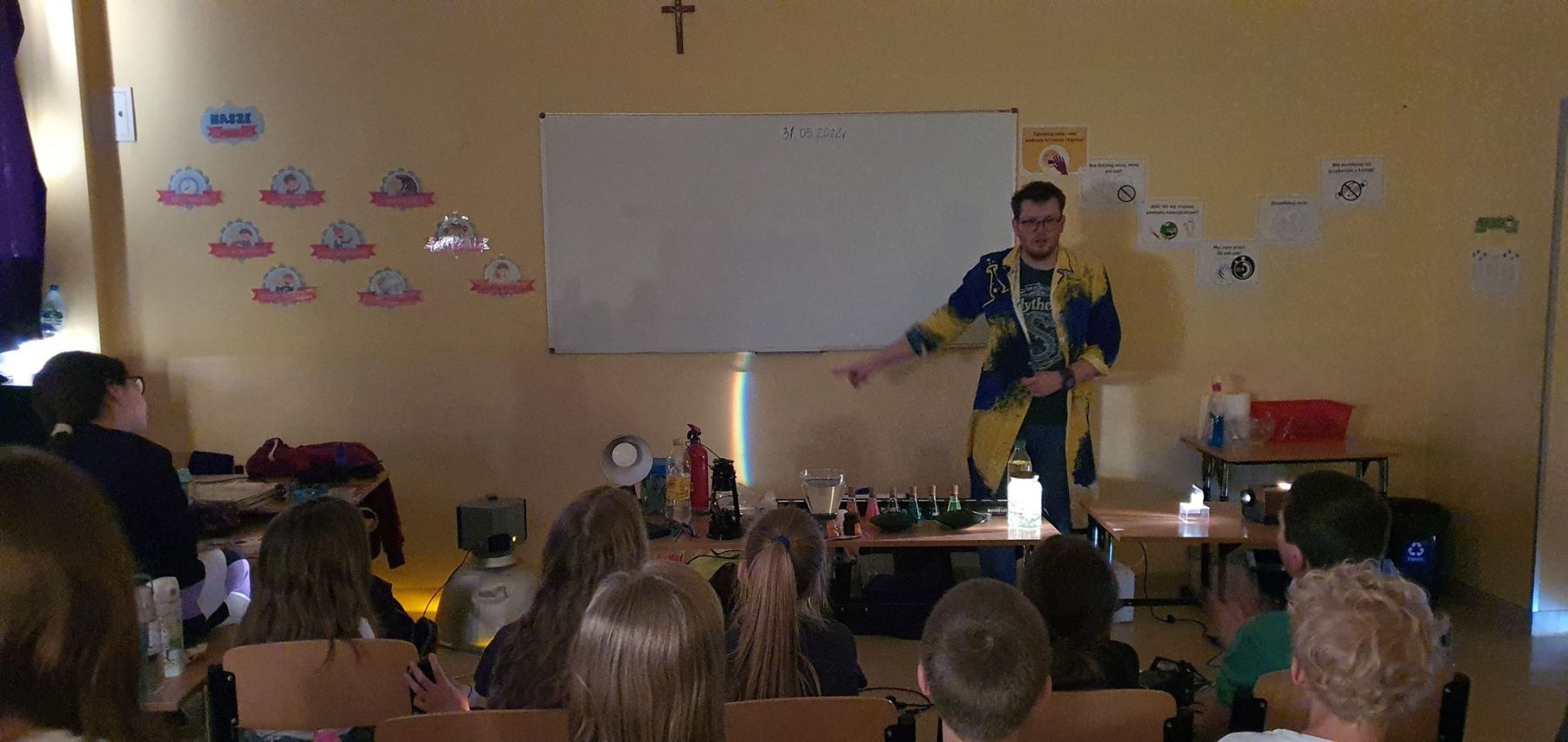 Ich pomysły na zaprezentowanie swoich doświadczeń oraz zaangażowanie w ich wykonanie przeszły oczekiwania wychowawców. Uczniowie wspaniale prezentowali swoje pokazy, mimo iż niektóre z nich się powtarzały to każda grupa wykonywała je w inny sposób. Można było podziwiać między innymi:
