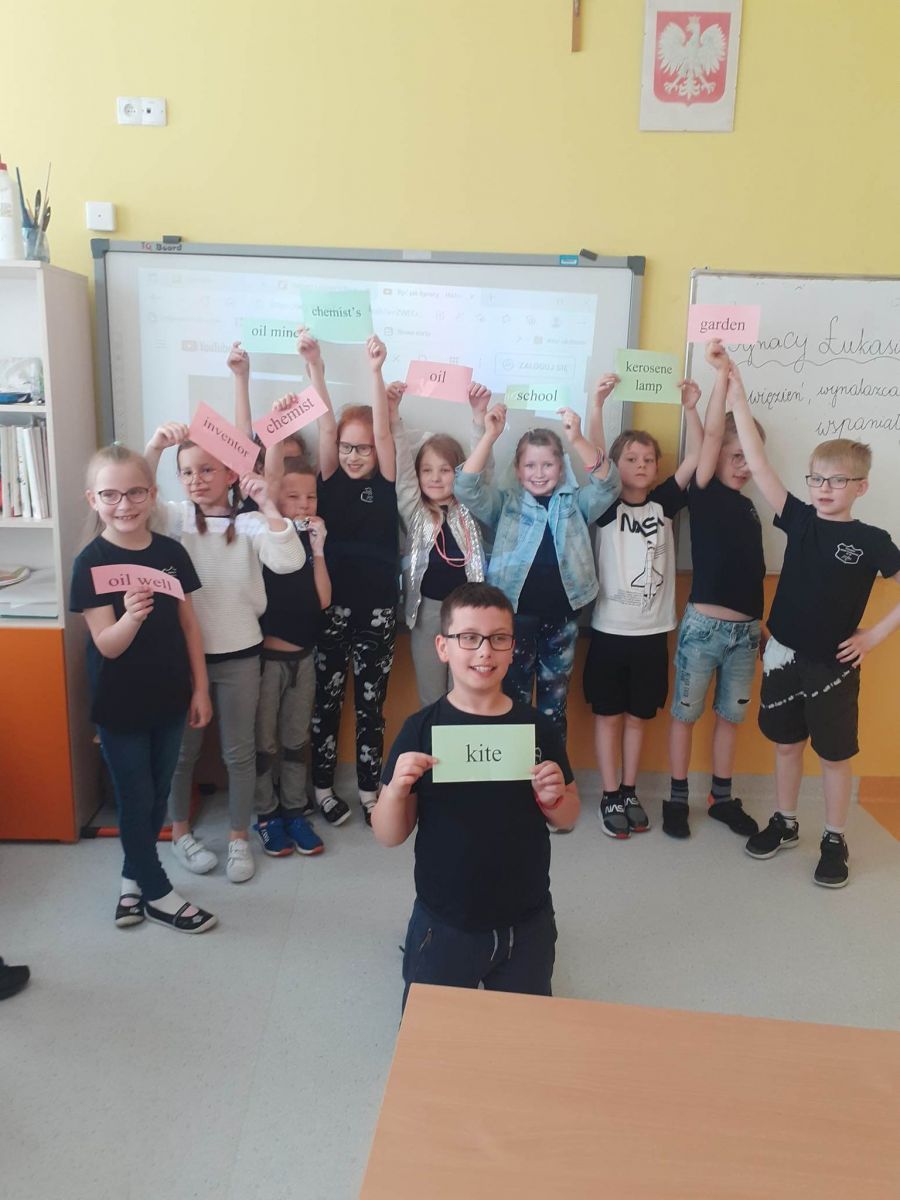 Na lekcji języka angielskiego dzieci poznawały słownictwo związane z wydobywaniem ropy naftowej. Wszyscy świetnie się bawili, a Pan Ignacy Łukasiewicz stał się wszystkim bardzo bliski.