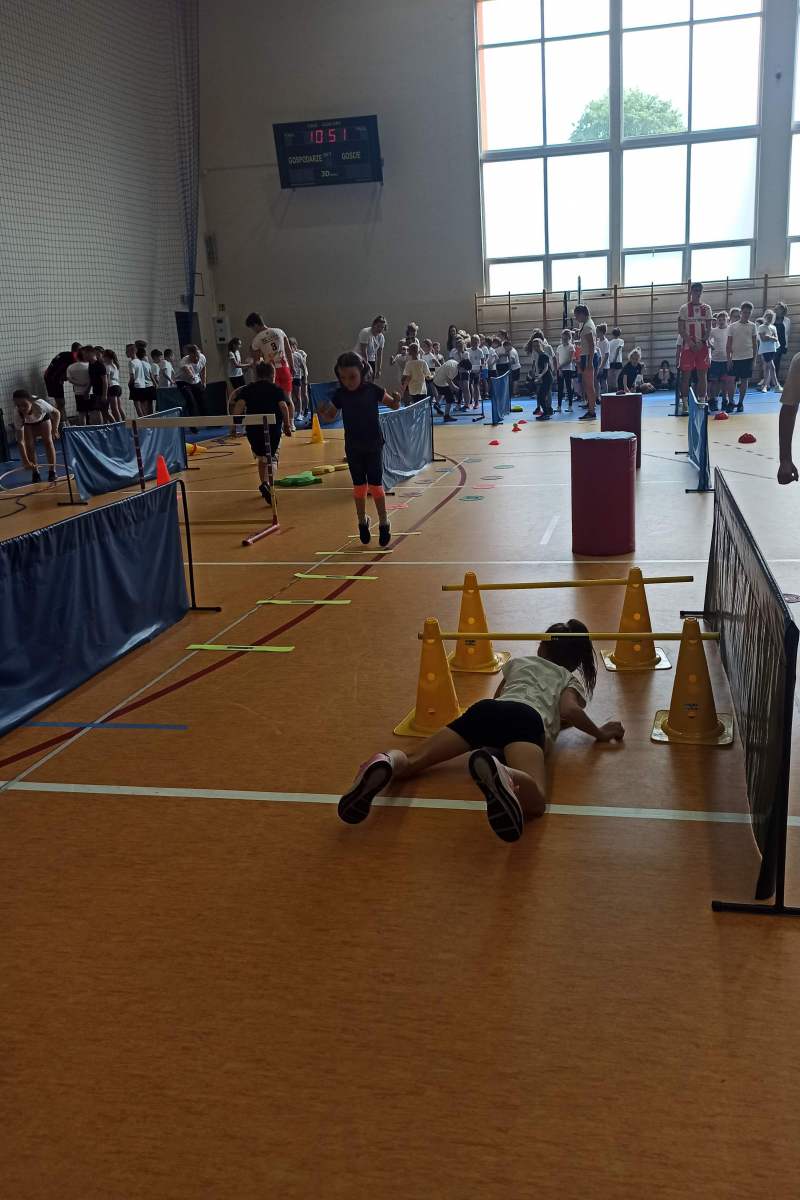 Mini Olimpiada Szkolna miała na celu integrację uczniów  klas młodszych, a rywalizacja była sprawą drugorzędną. Najważniejsza była dobra zabawa. Zadaniem dzieci było pokonanie torów przeszkód, które oparto o naturalne umiejętności dziecka jak bieg, skok, rzut. Zawody nastawione były na promowanie aktywności fizycznej oraz rozwijanie takich umiejętności jak: komunikacja, relacje, współpraca czy kreatywne myślenie.