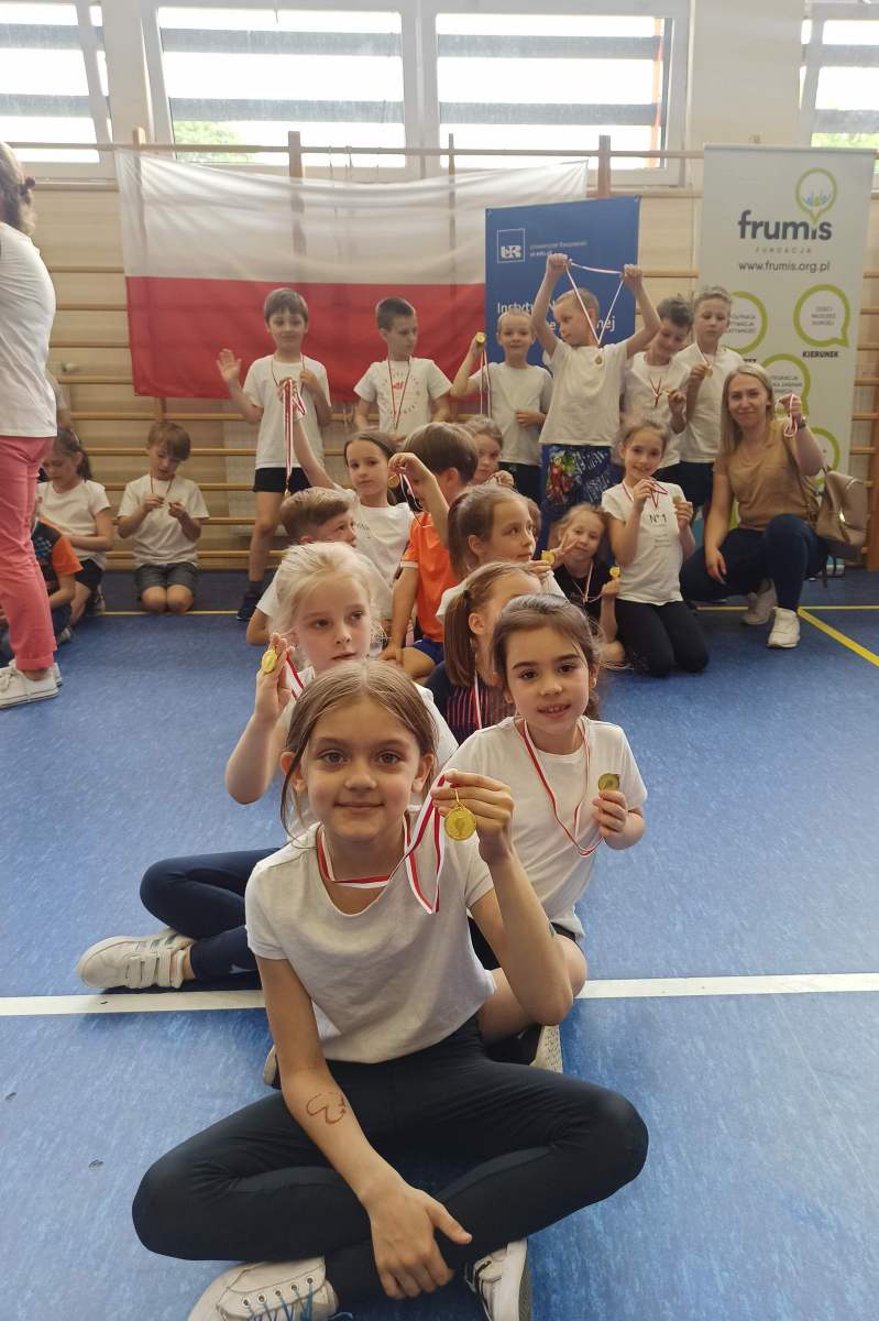Wszystkie dzieci, które wzięły udział w sportowych zmaganiach otrzymały złote medale. Każdy uczestnik był zwycięzcą – nie było przegranych i pokonanych. Nasze pierwszaki z olimpiady wróciły zmęczone, ale bardzo zadowolone.