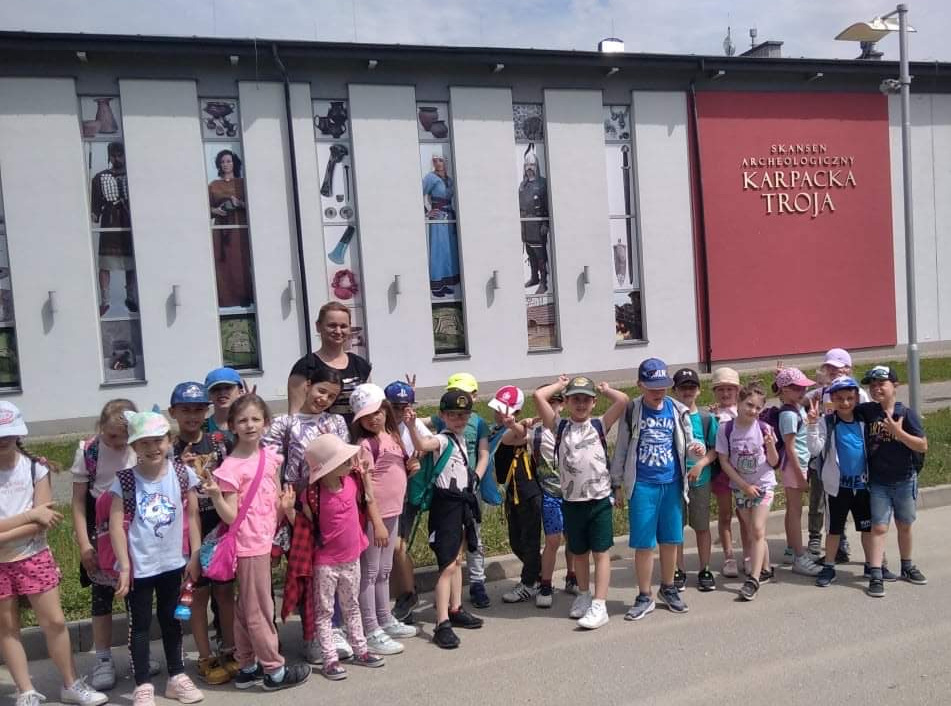 Dnia 20 maja uczniowie klas pierwszych naszej szkoły wraz wychowawcami pojechali na wycieczkę do Trzcinicy.  Celem naszej wyprawy była Karpacka Troja – Skansen Archeologiczny koło Jasła. Miejsce, w którym powstał Skansen, to jedno z najważniejszych stanowisk archeologicznych w Polsce, o wyjątkowym znaczeniu dla poznania pradziejów Europy Środkowo-Wschodniej. Karpacka Troja to oryginalne połączenie tradycyjnej formy skansenu i nowoczesnej placówki muzealnej.