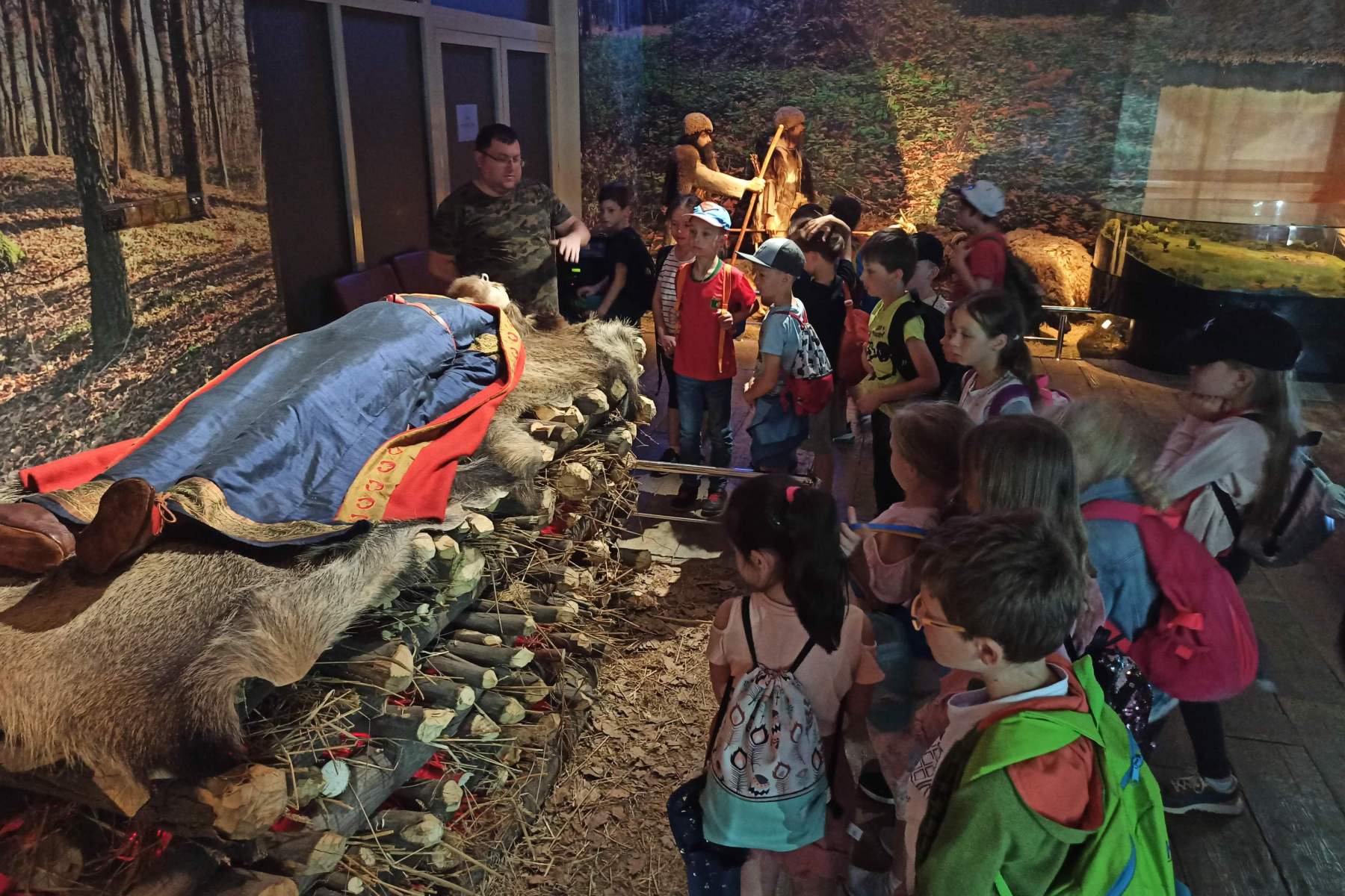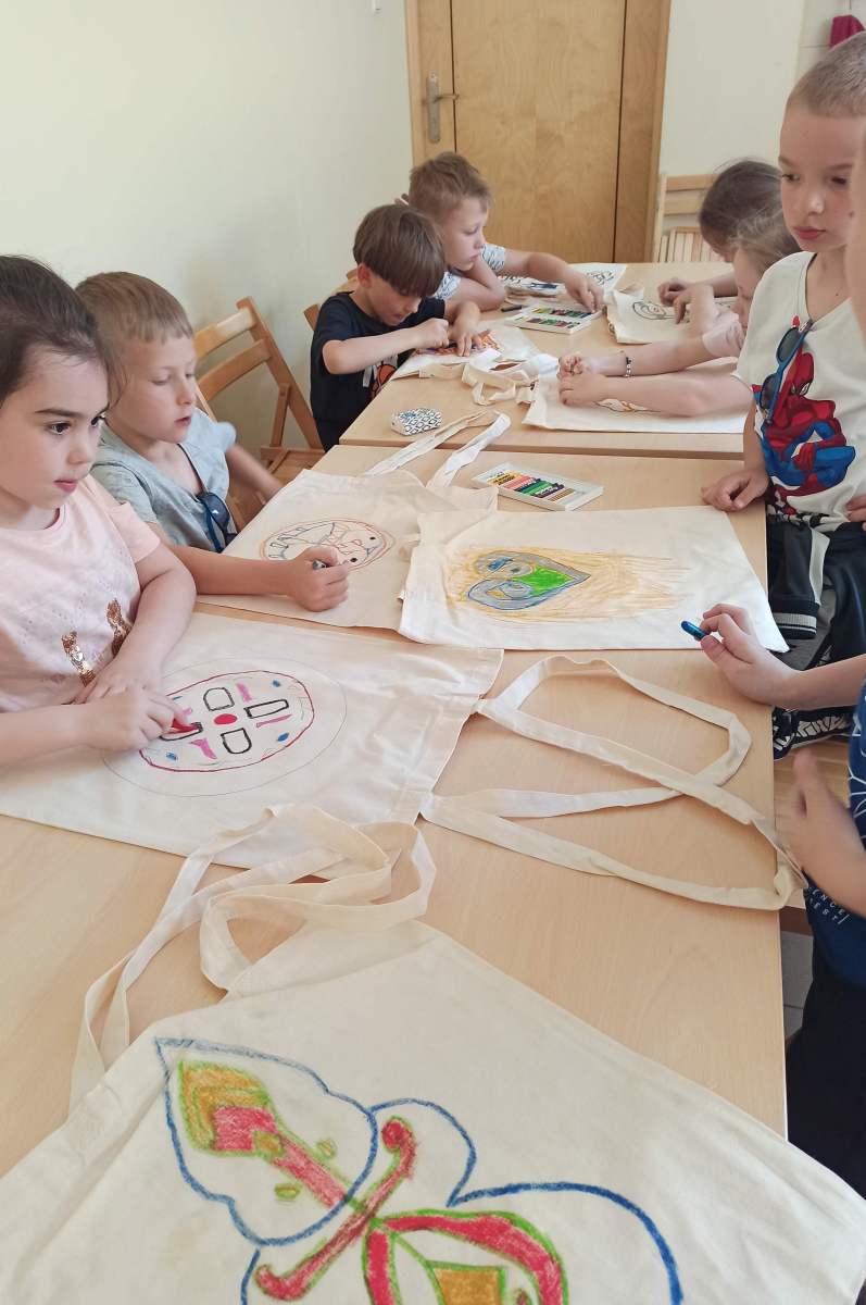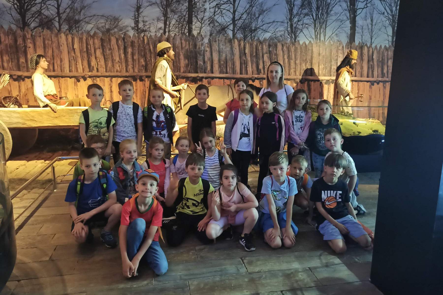 Naturalnej wielkości postacie, idealnie odtworzone narzędzia pracy czy drewniany wóz sprawiły, że mogliśmy cofnąć się do epoki brązu i wejść w sam środek życia mieszkańców karpackiej osady książęcej. Zwiedziliśmy wspaniale zaaranżowaną ekspozycję i obejrzeliśmy widowiskowy film o Karpackiej Troi. W parku archeologicznym zobaczyliśmy zrekonstruowano osadę kultury sprzed 3,5 tysiąca lat oraz wioskę słowiańską z IX wieku i kuźnię – w sumie zobaczyliśmy aż 18 chat. Dzieci wzięły również udział w warsztatach pt. „Ornamentem zdobione” – podczas nich własnoręcznie wykonywały i ozdabiały płócienne ekotorby, które zabrały ze sobą do domu, również jako prezent dla najbliższych. Dodatkowym atutem wycieczki było również obcowanie z przyrodą i zwierzętami zamieszkującymi osadę.